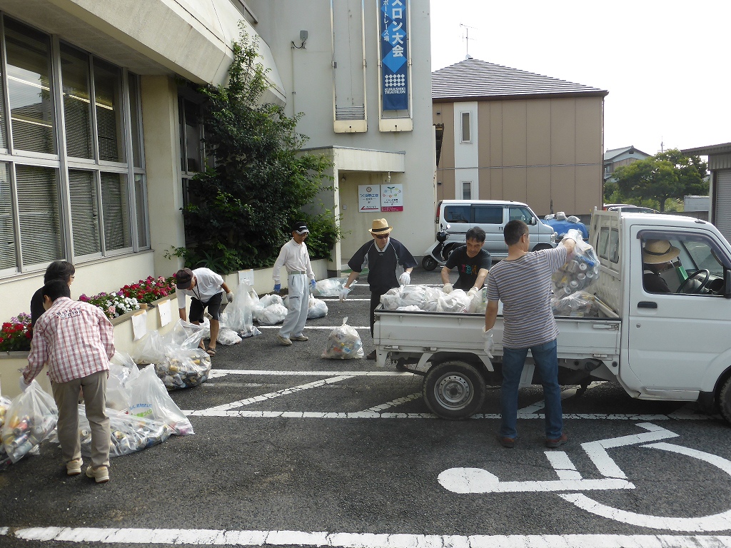 前事務局長は、集まった350mlの空き缶で