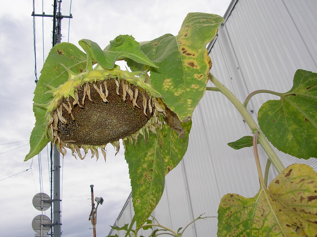 せっかく花をつけた、前事務局長のヒマワリですが