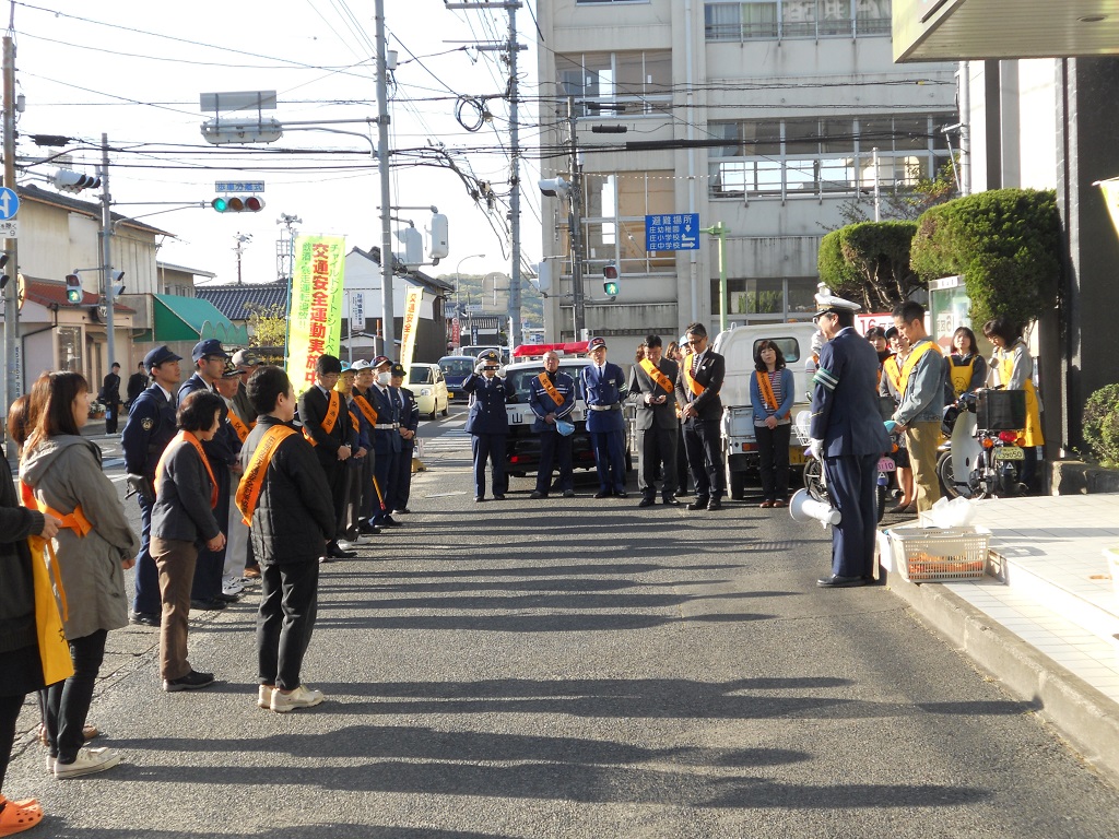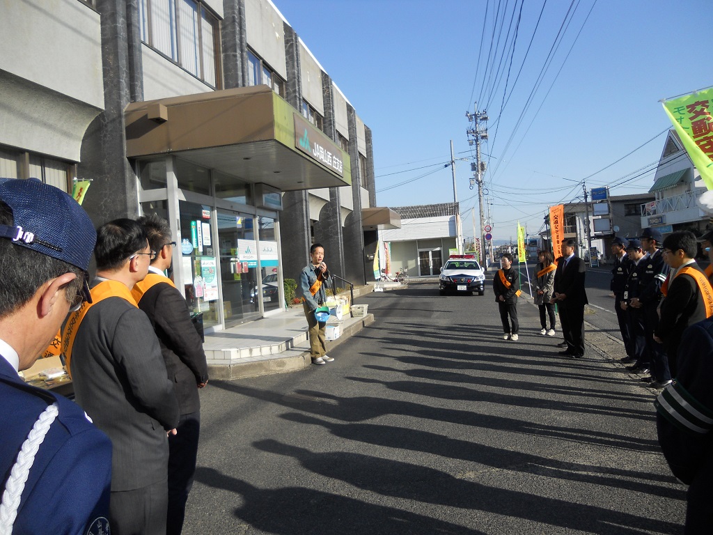 交通安全対策協議会会長と倉敷署交通課の方の挨拶です