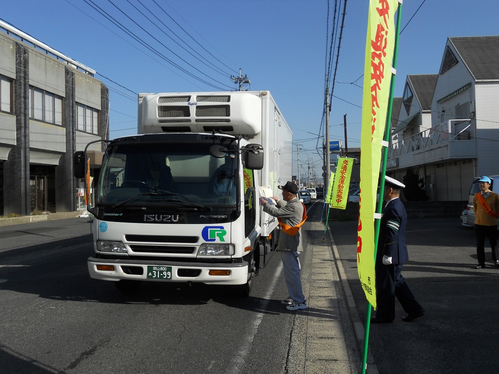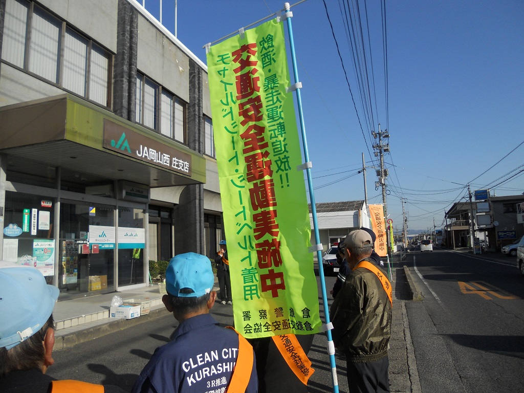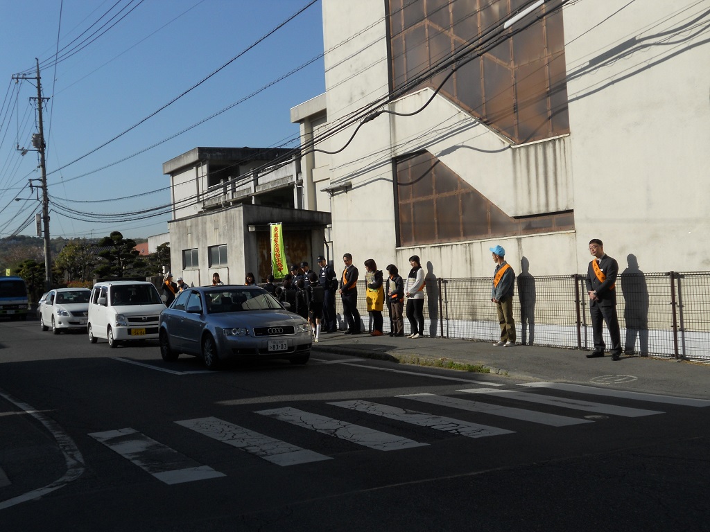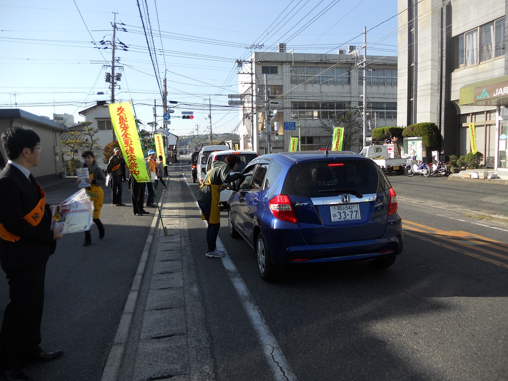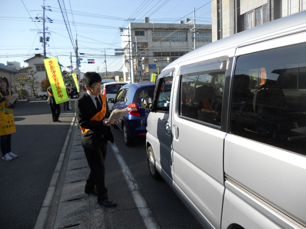 いっぱい立てられた交通安全運動のノボリにも気付いて