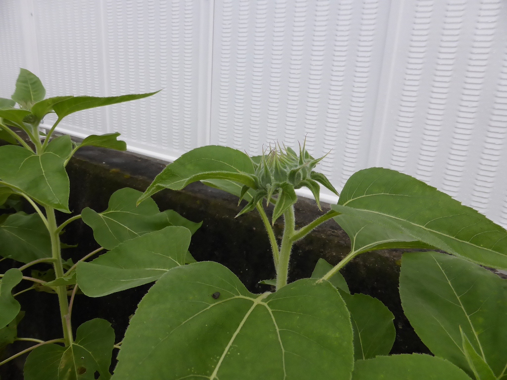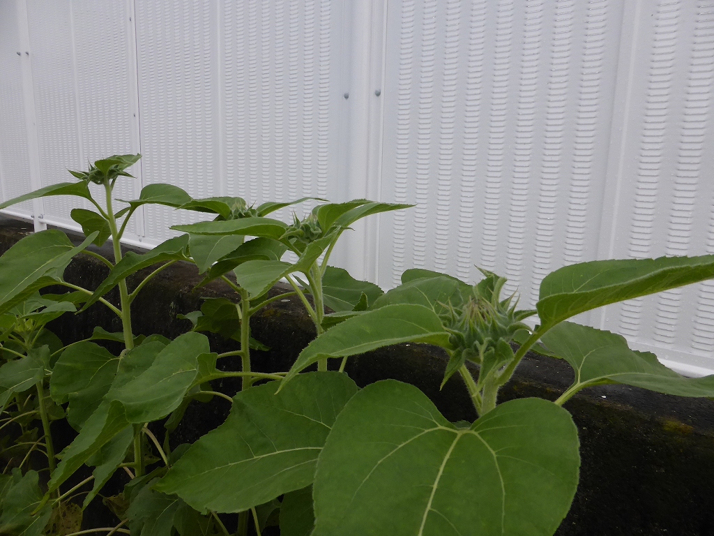 今年、前事務局長は植えたヒマワリは、まだつぼみのまま・・・