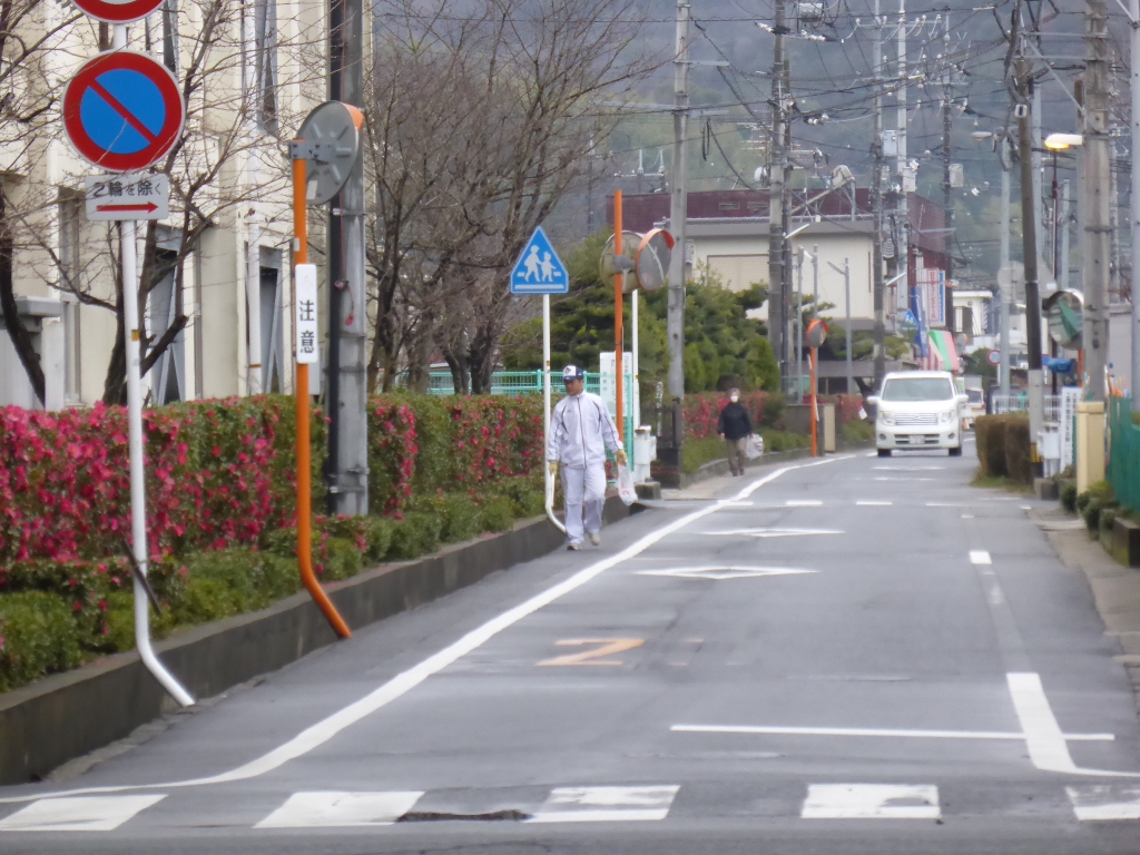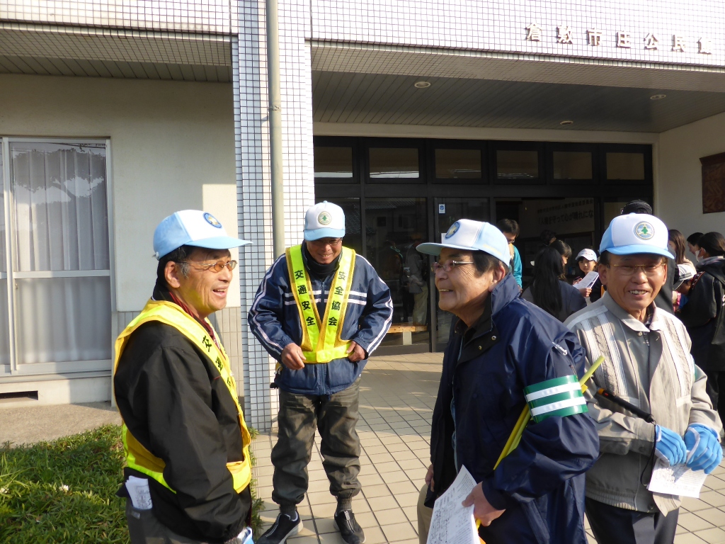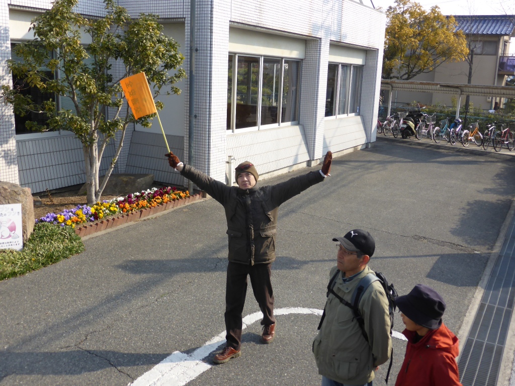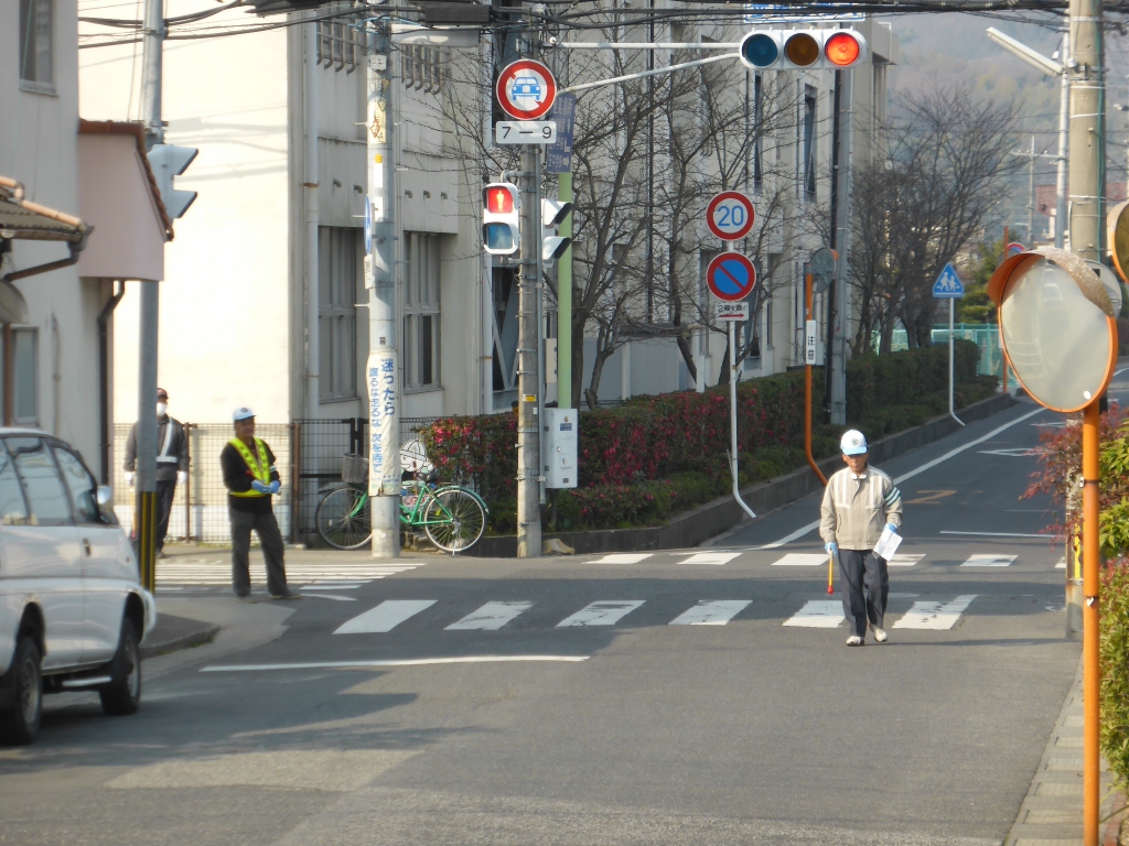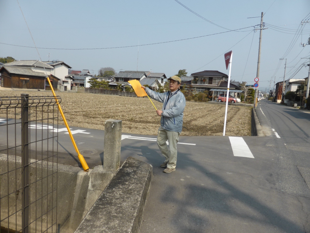 公民館すぐの交差点には、既に交通係がスタンバイしています