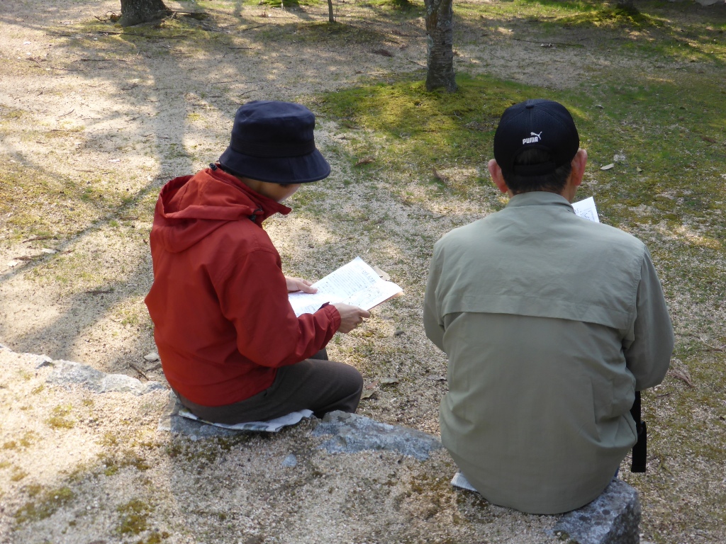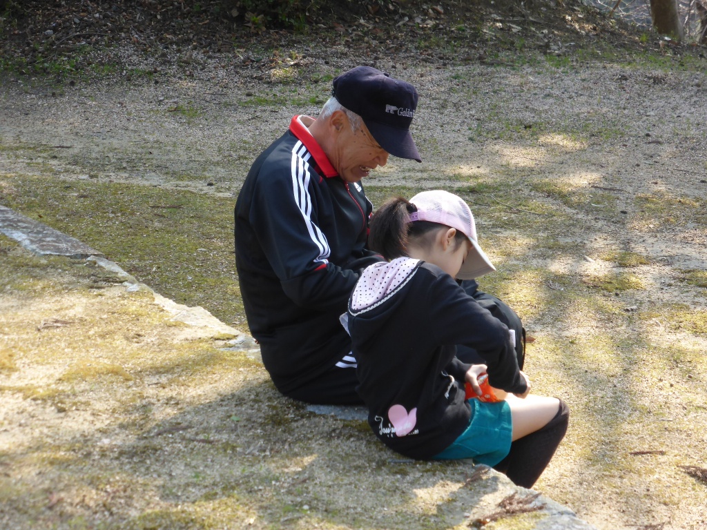 資料に目を通す方、おじいちゃんとゆっくり休憩・・・