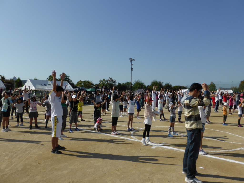 庄スポーツ少年団のリードで、準備体操
