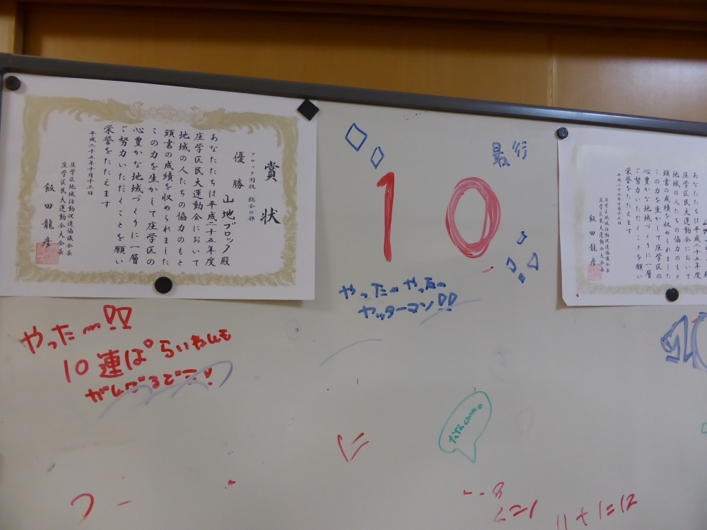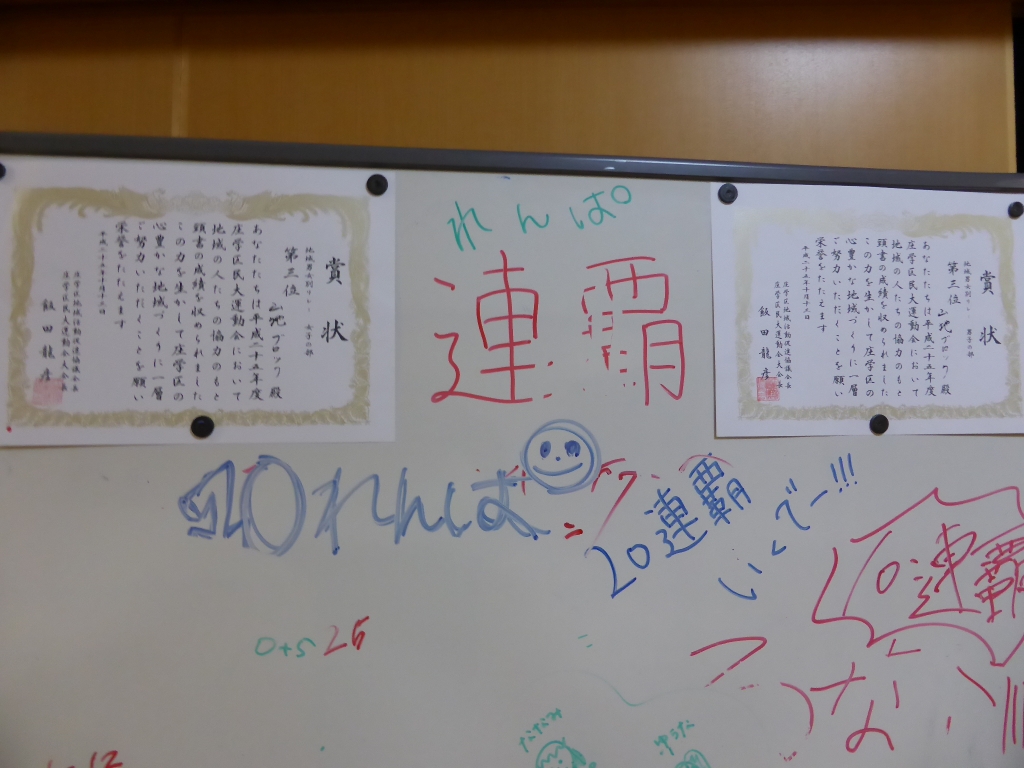 得点掲示板が出来上がってすぐ、役員集合です
