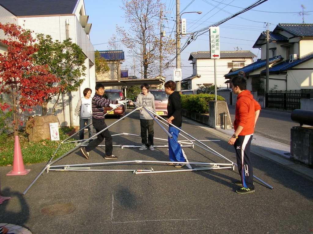 ①けんけん→②縄跳び→③色紙の頭乗せ→④絆色紙記入→⑥絆色紙披露(ゴール)
