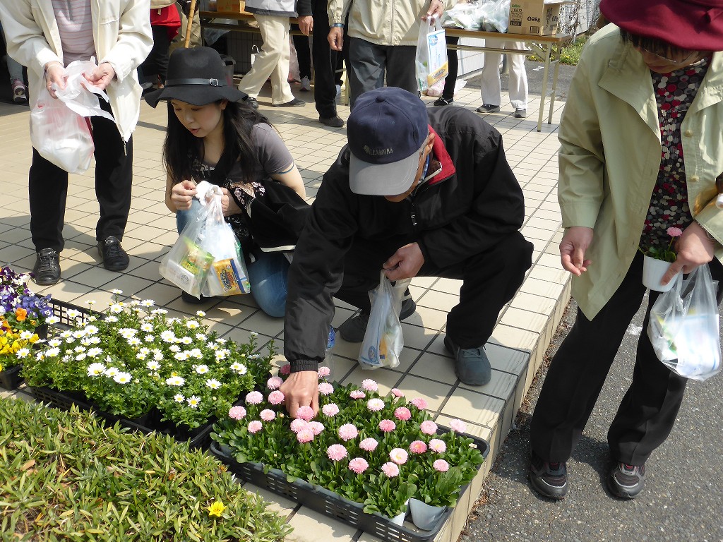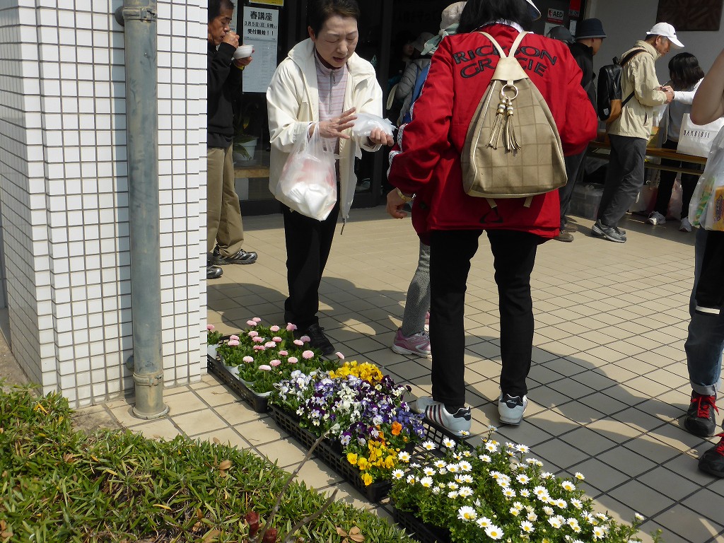 花と花の間は、こうして手で・・・、会長の姿勢が物語ってます