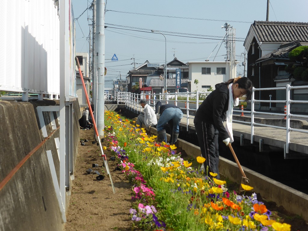 「ふれあい花壇」の前を通過です