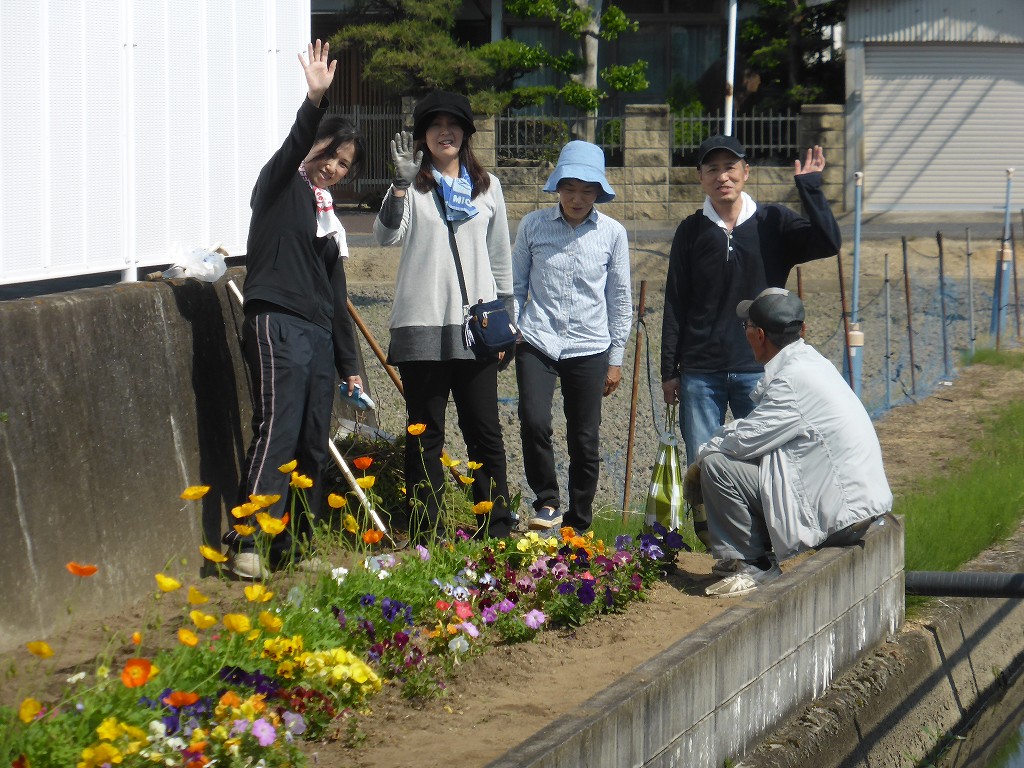 花壇隣の田んぼも、田植えは終了したようです
