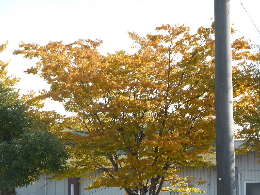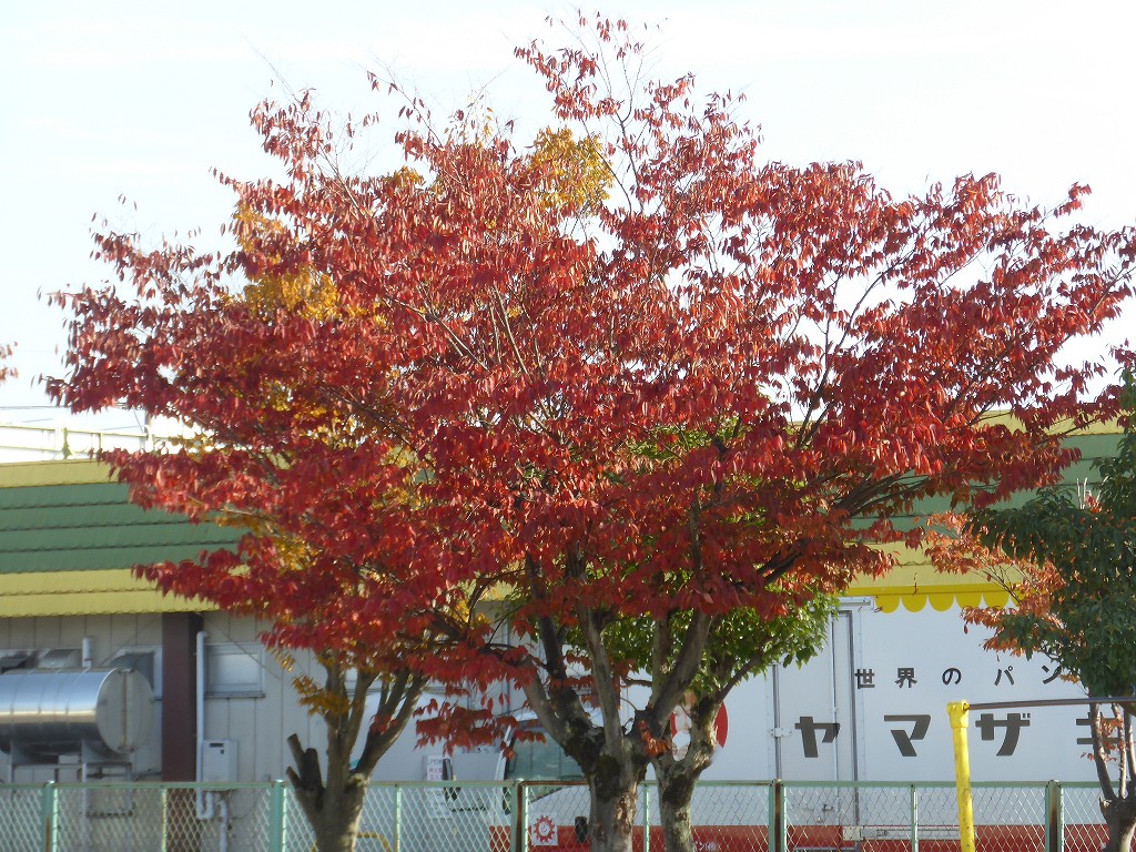 小学校の校庭の木々も紅葉中