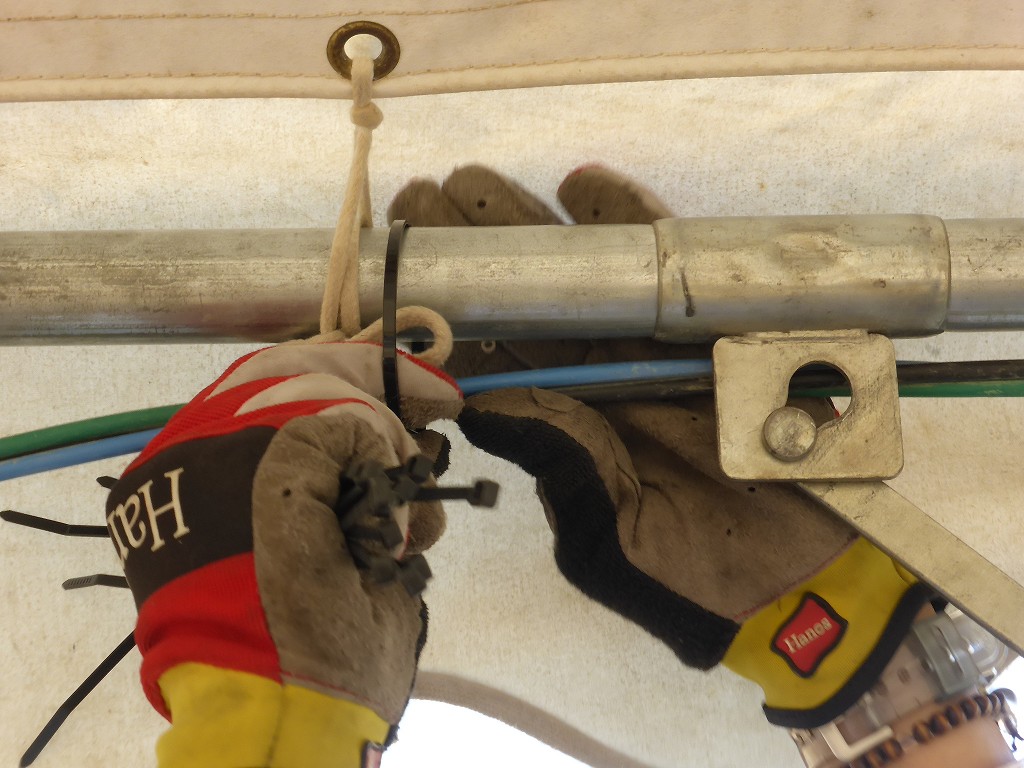 南側のテントが揃った時点で、電気配線です