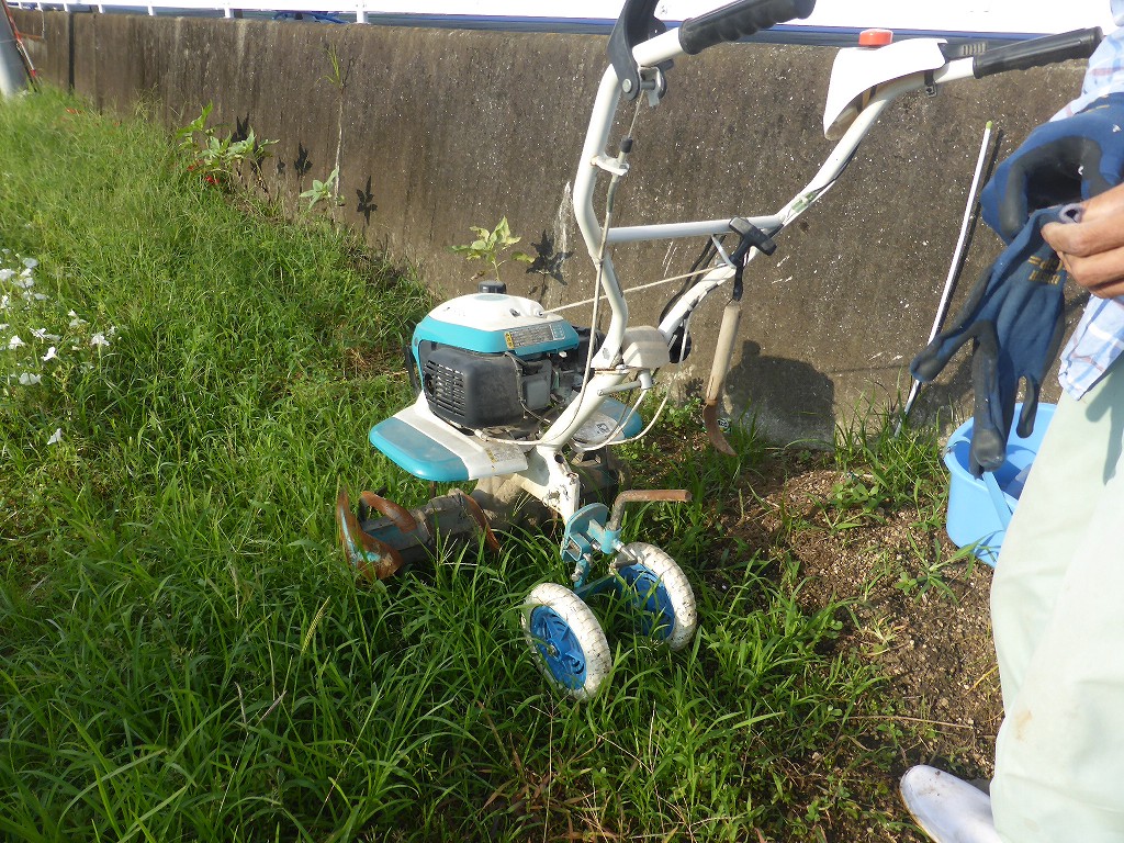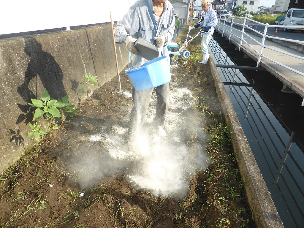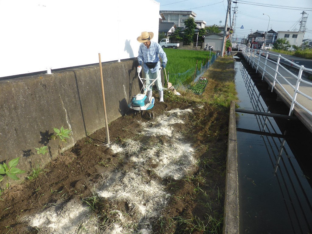 石灰と肥料が入った後、マメトラでかき混ぜました