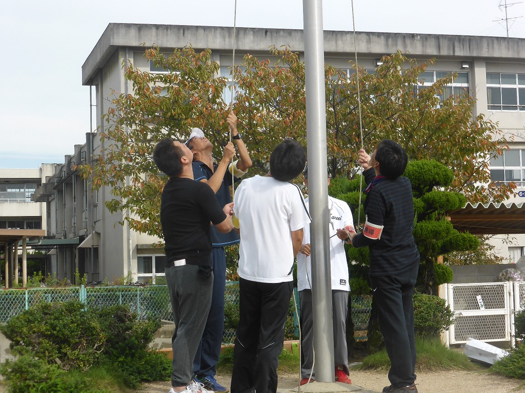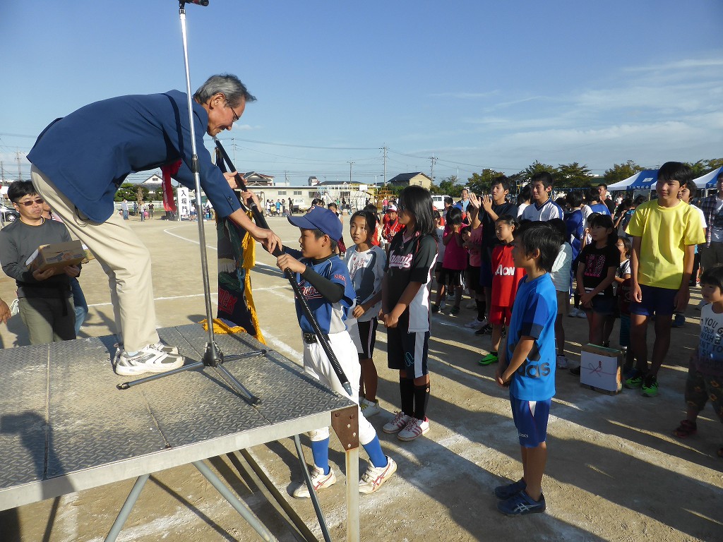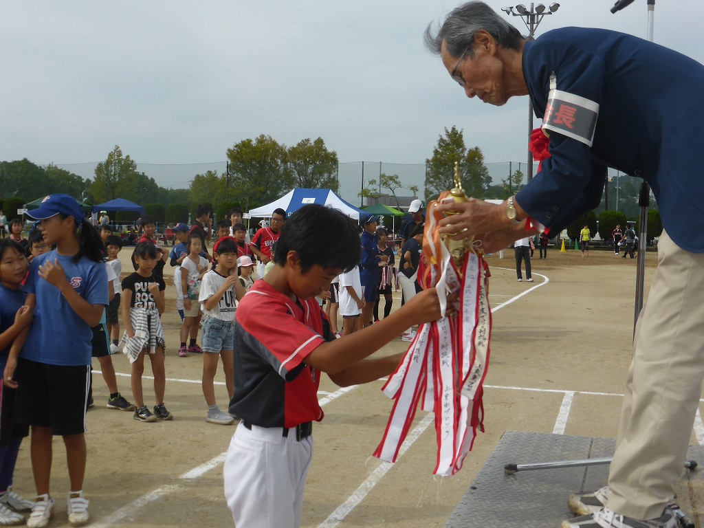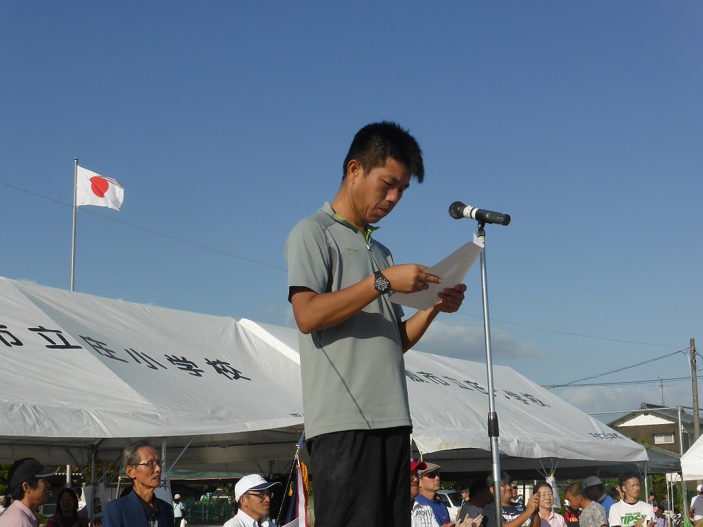 優勝旗とリレーの盾の返還ですが、登場は山地のみ