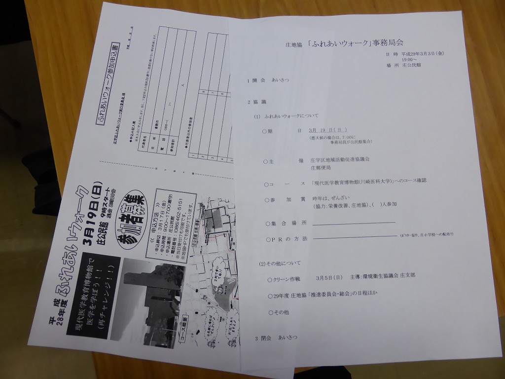 今日は、2016年度最後のイベント「ふれあいウォーク」の打ち合わせです