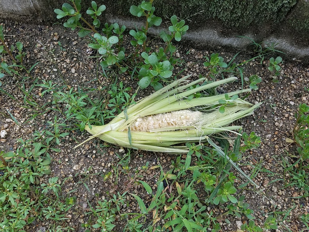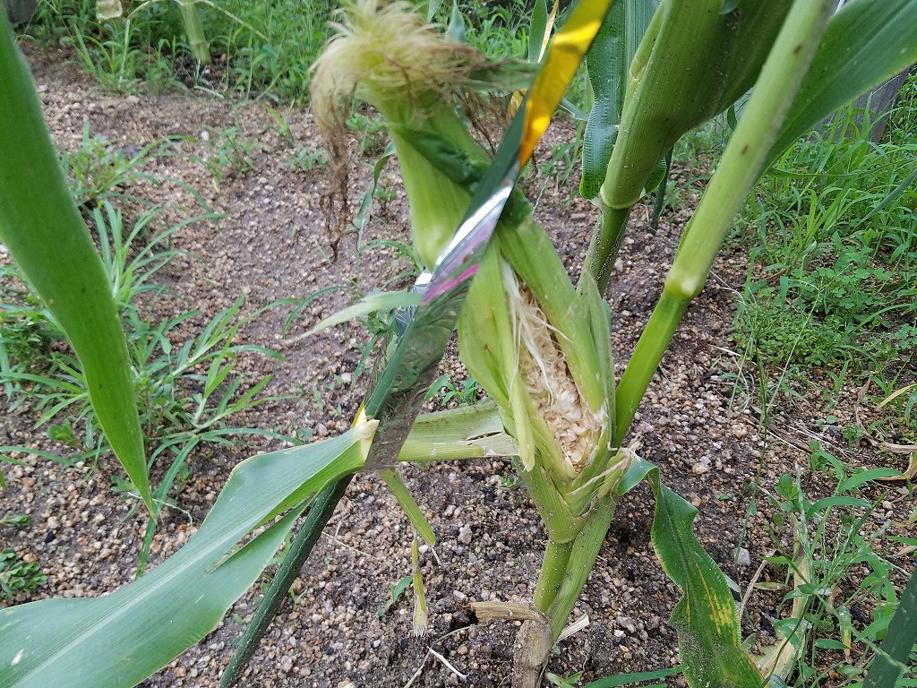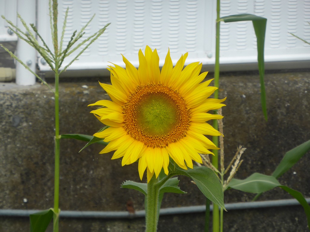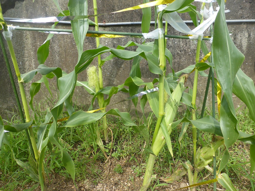 事務局長のヒマワリと私のトウモロコシの様子を見に行きました