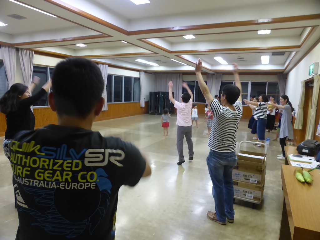 ちょうど暗くなり、大会議室の窓がいい鏡になり、踊りもチェック
