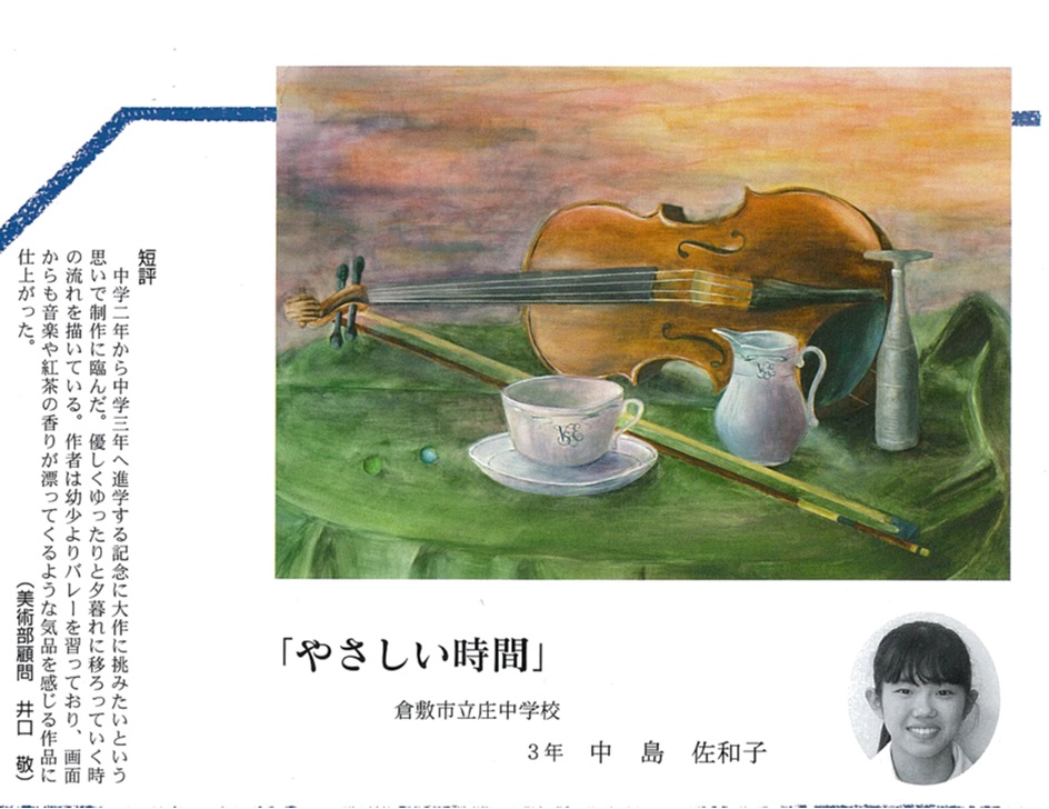 作品の隣には美術部顧問の井口先生の短評も記載されています