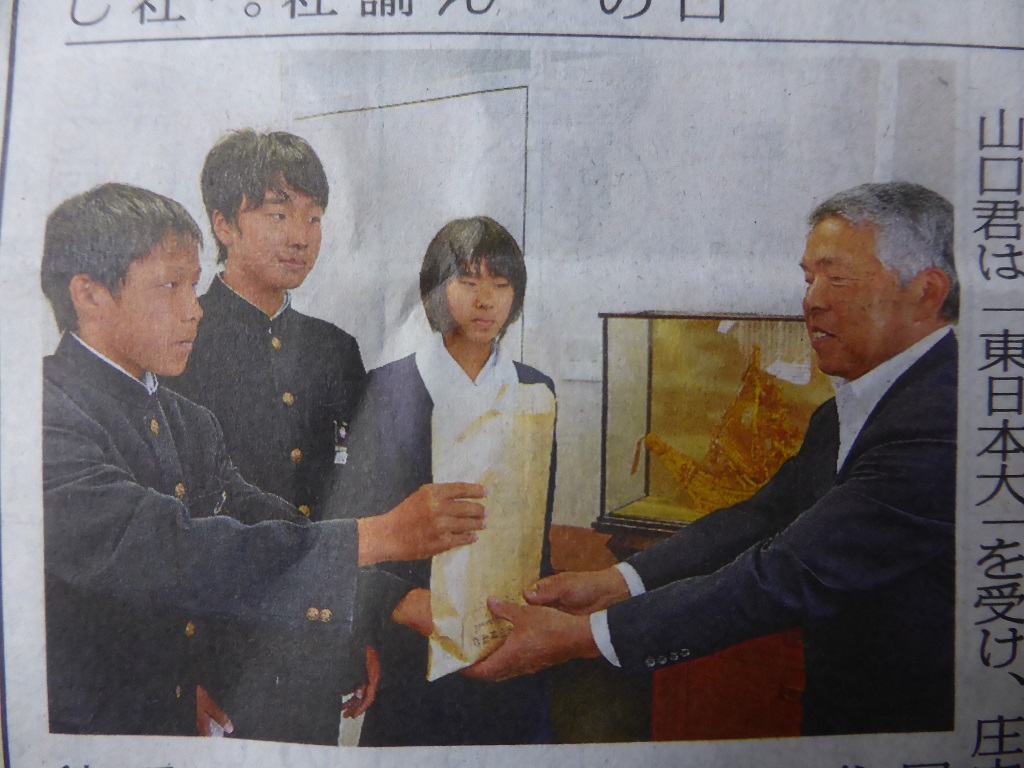 庄中3年の小村 駿介君が最優秀賞を受賞しましたemoji