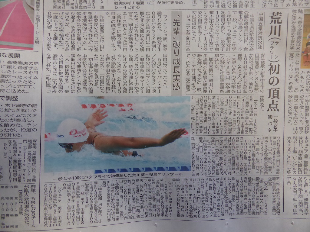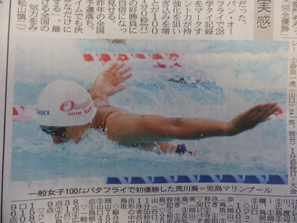 先の中国大会で2種目優勝(50m自由形、100mバタフライ)し