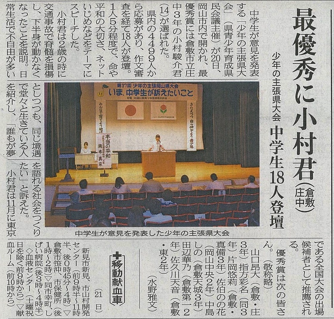 第37回少年の主張岡山県大会が20日
