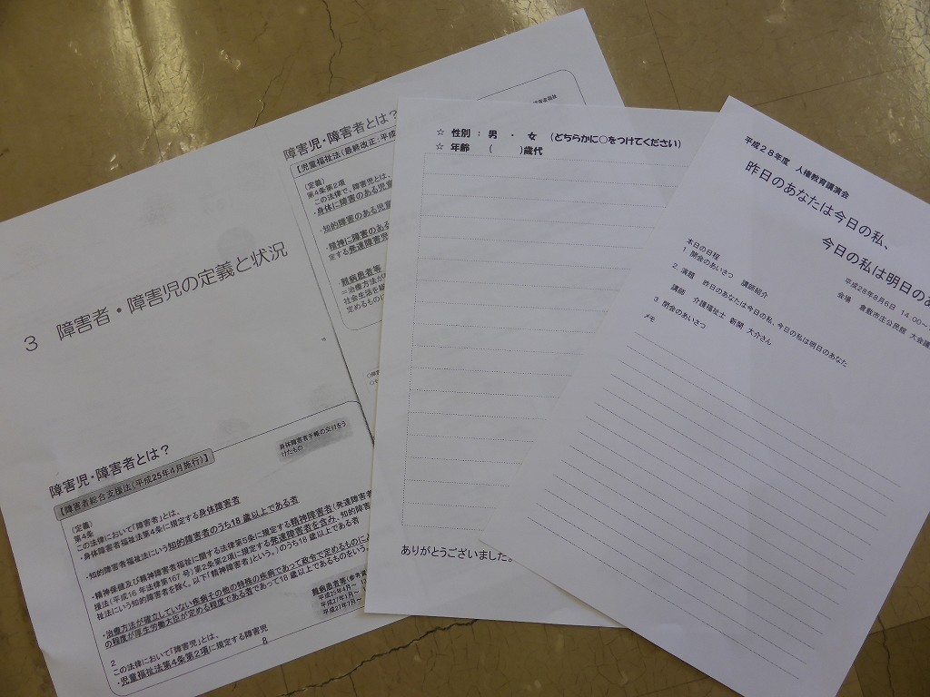 今日は庄学区の「人権教育講演会」です(公民館主催)