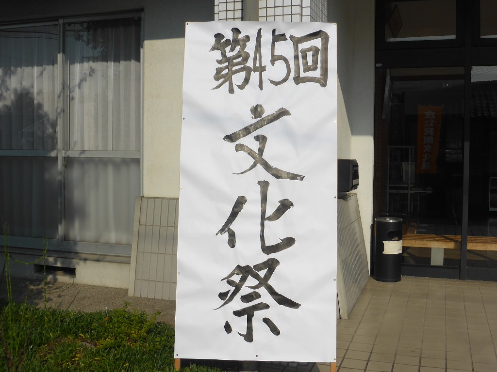 道路そばにはノボリ、入口前には「文化祭」、入ってすぐには「ようこそ」