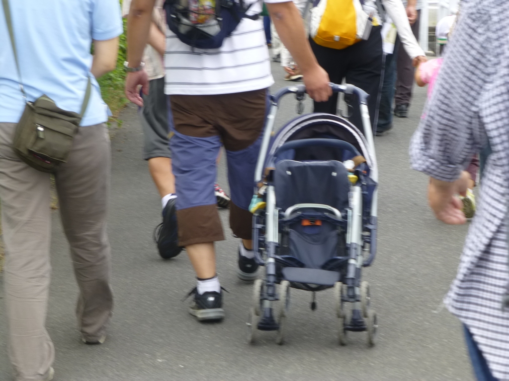ご両親が2人のお子さんを乳母車に乗せて・・・、いい風景です