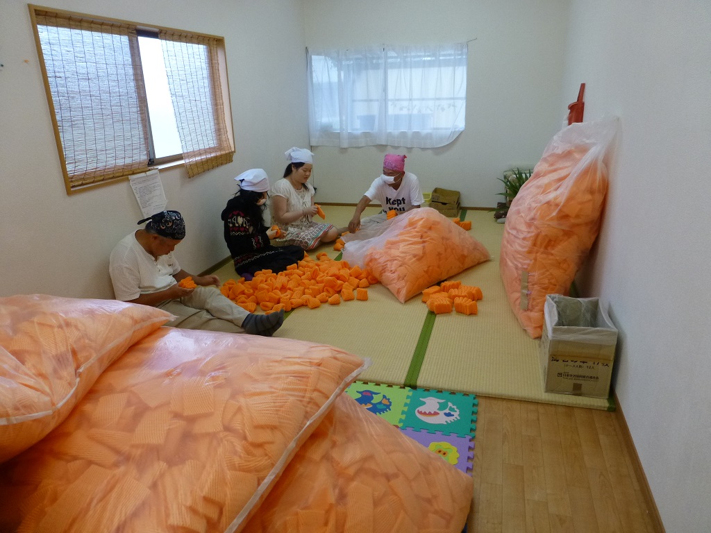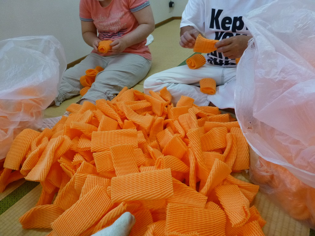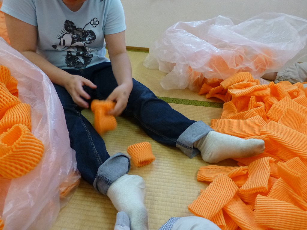 こちらでは、果物にかぶせるカバー作りかな(?)