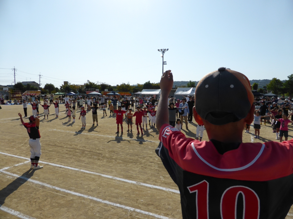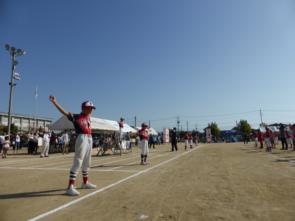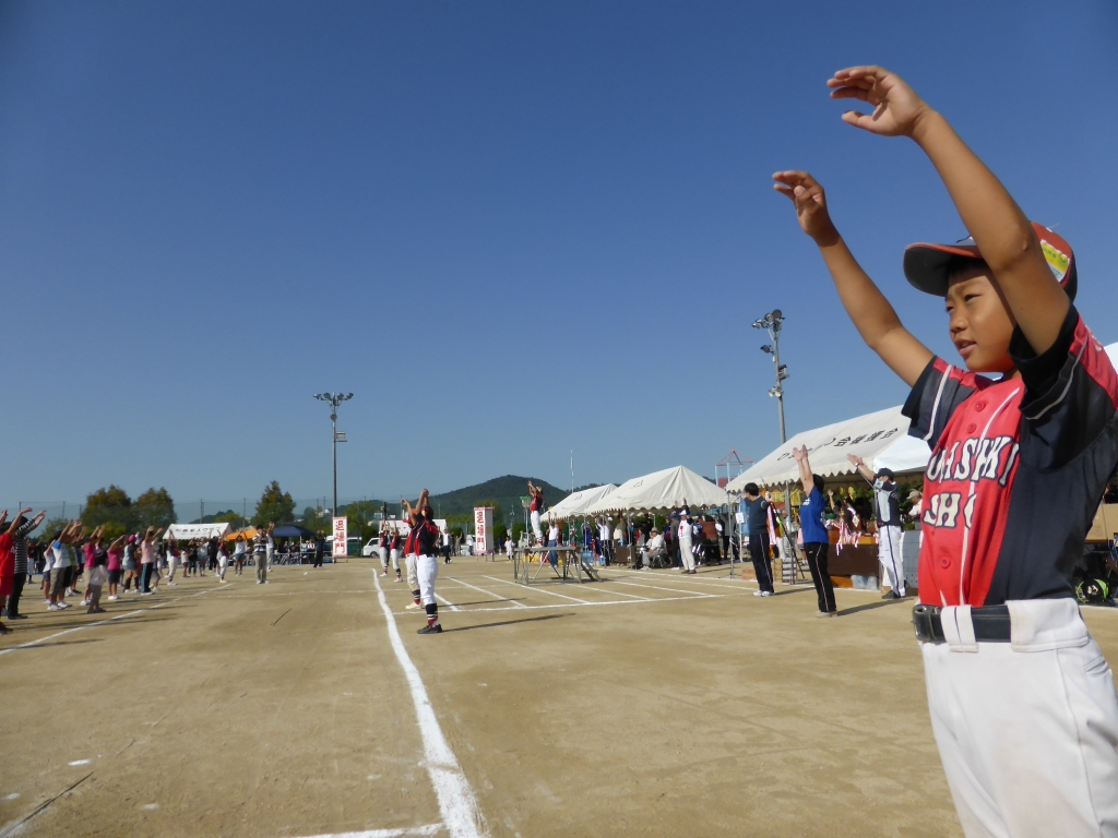 グラウンドの中はもちんですが、観客席でも準備体操です