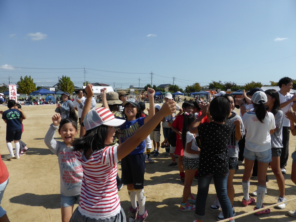 ①けんけん→②縄跳び→③色紙の頭乗せ→④絆色紙記入→⑥絆色紙披露(ゴール)