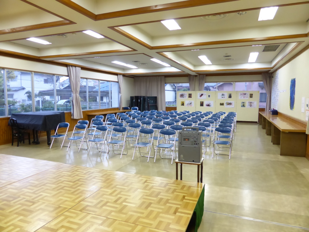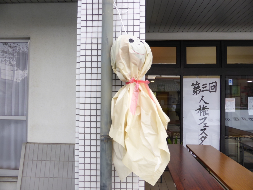 会場の庄公民館には、こ~んな大きなテルテル坊主です