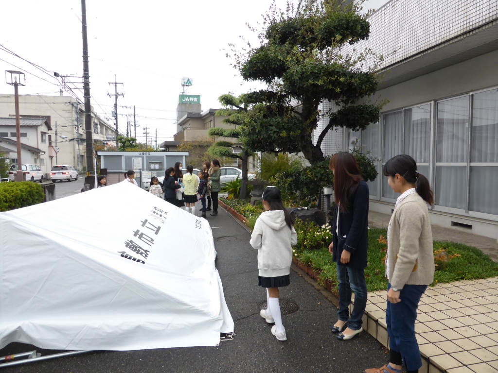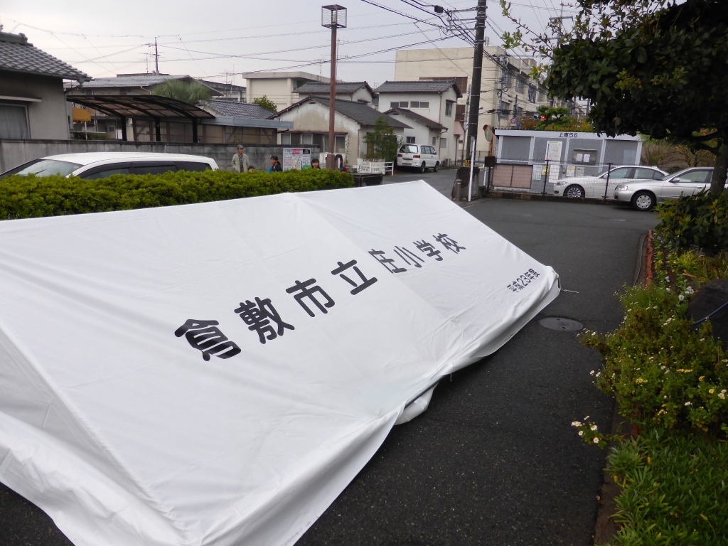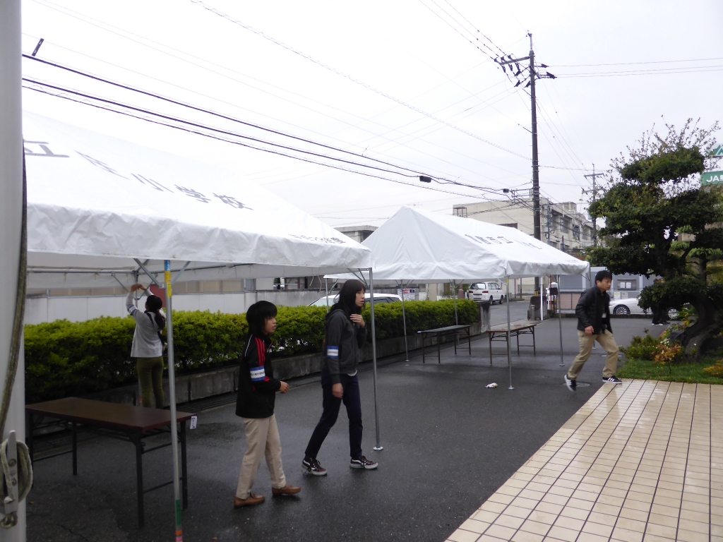 推進委員用の腕章を付け、外での飲食用のテント立てです