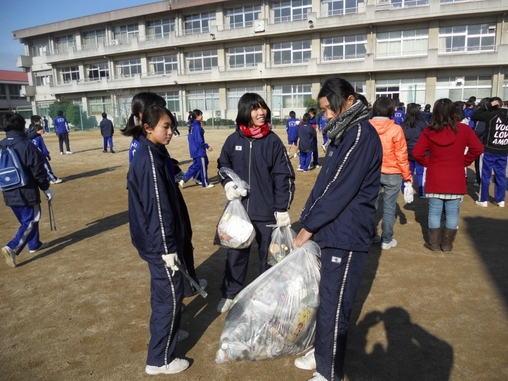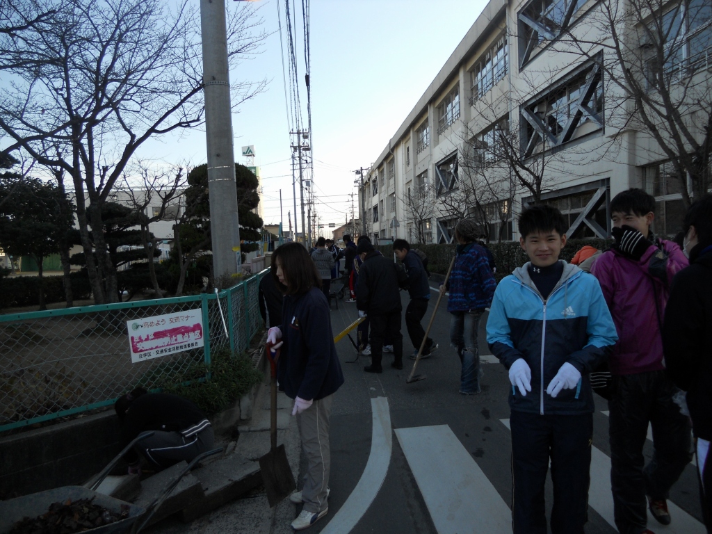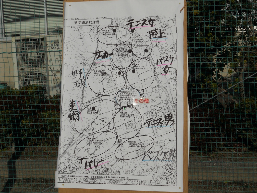 中学生は写真の担当通り、通学路の清掃に出かけました