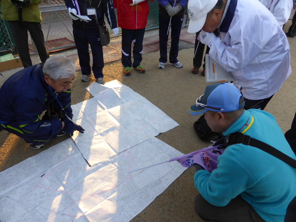コースリーダーは黄色いタスキ、アンカーは赤いタスキです