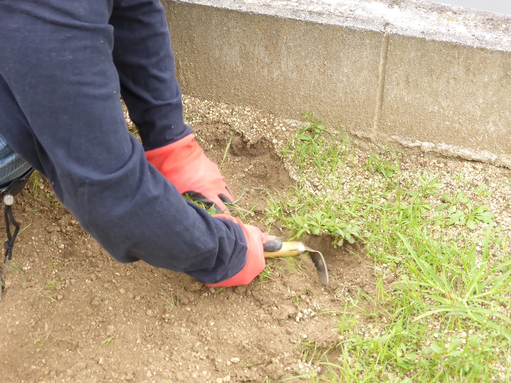 事務局長が「根こそぎ草を取ってる姿を