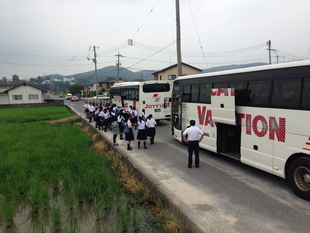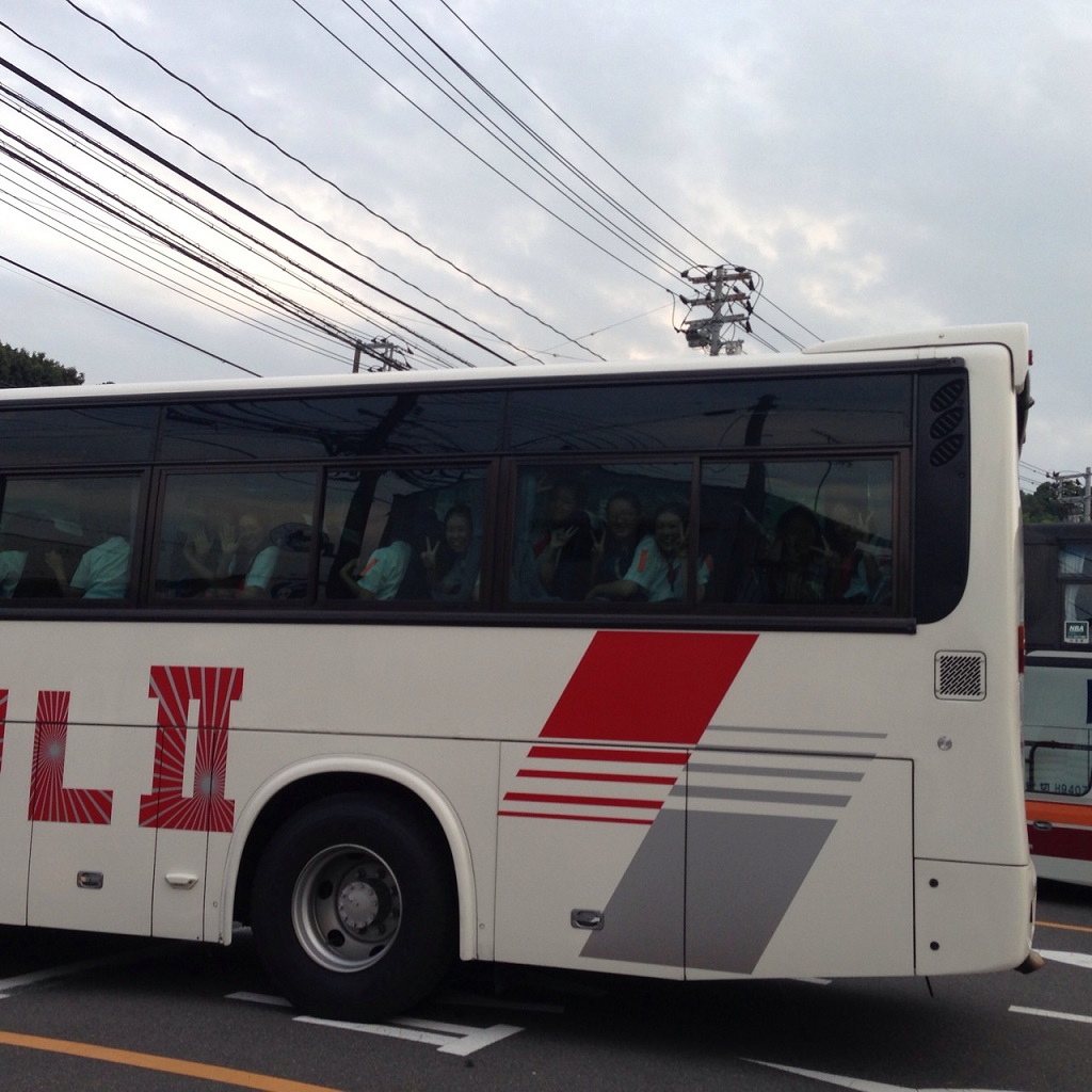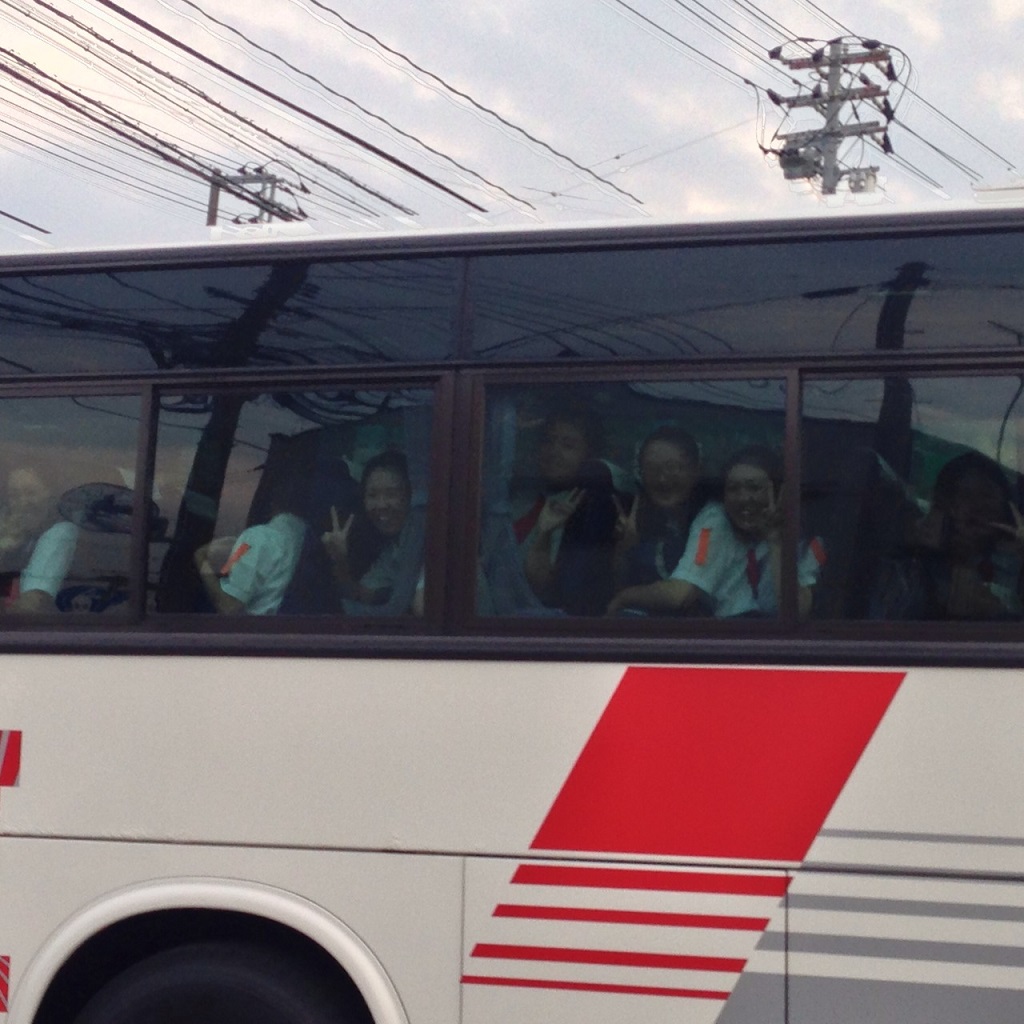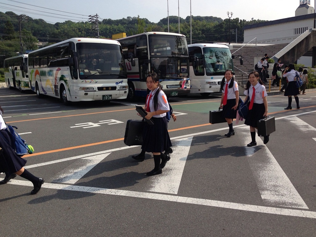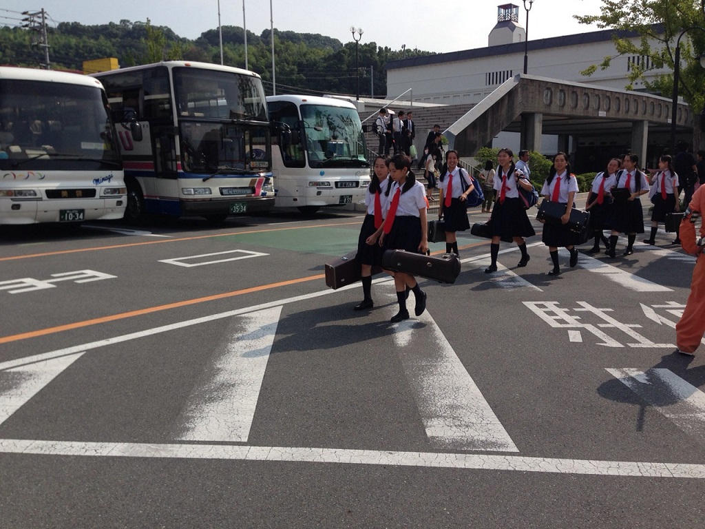 楽器の搬出を終え、生徒達は一緒にバス移動です