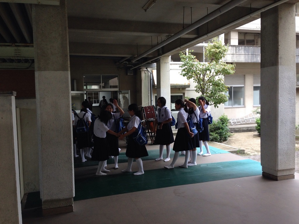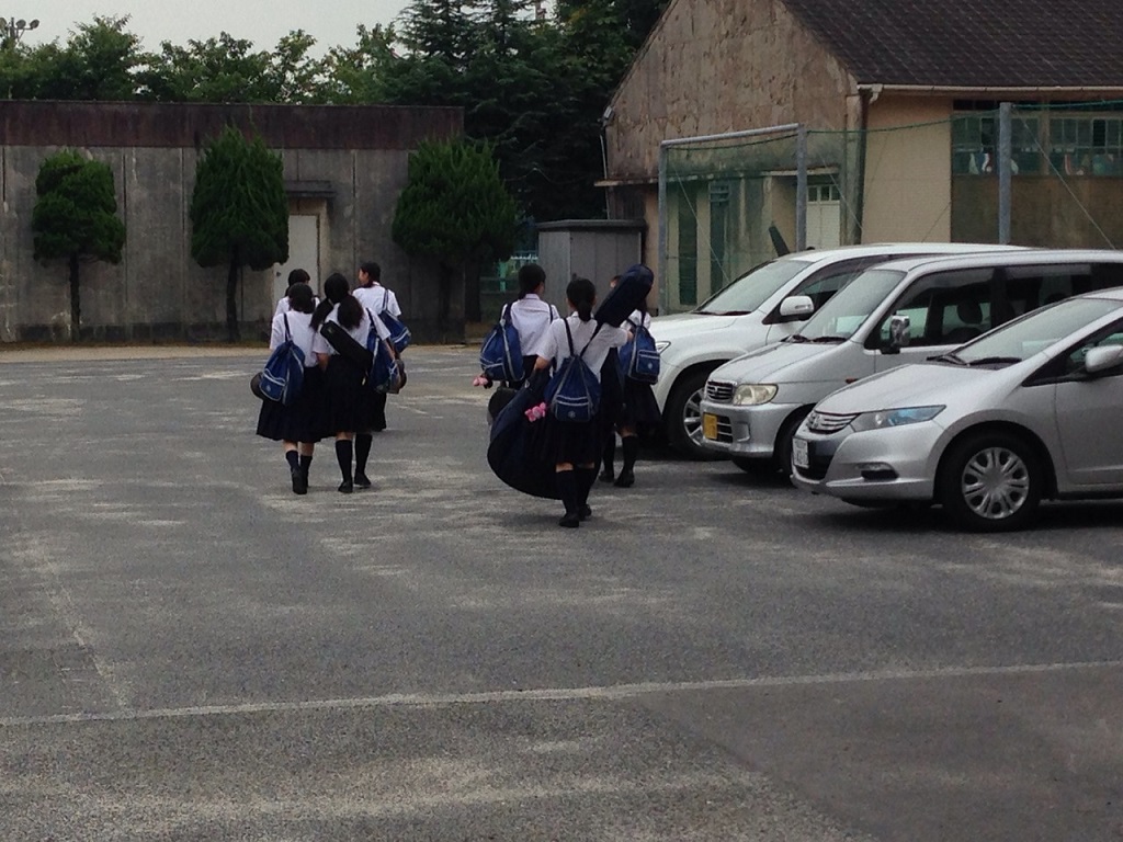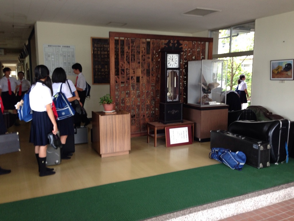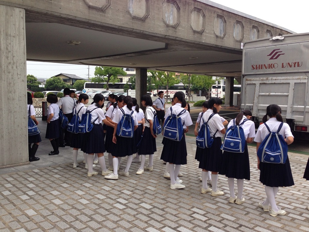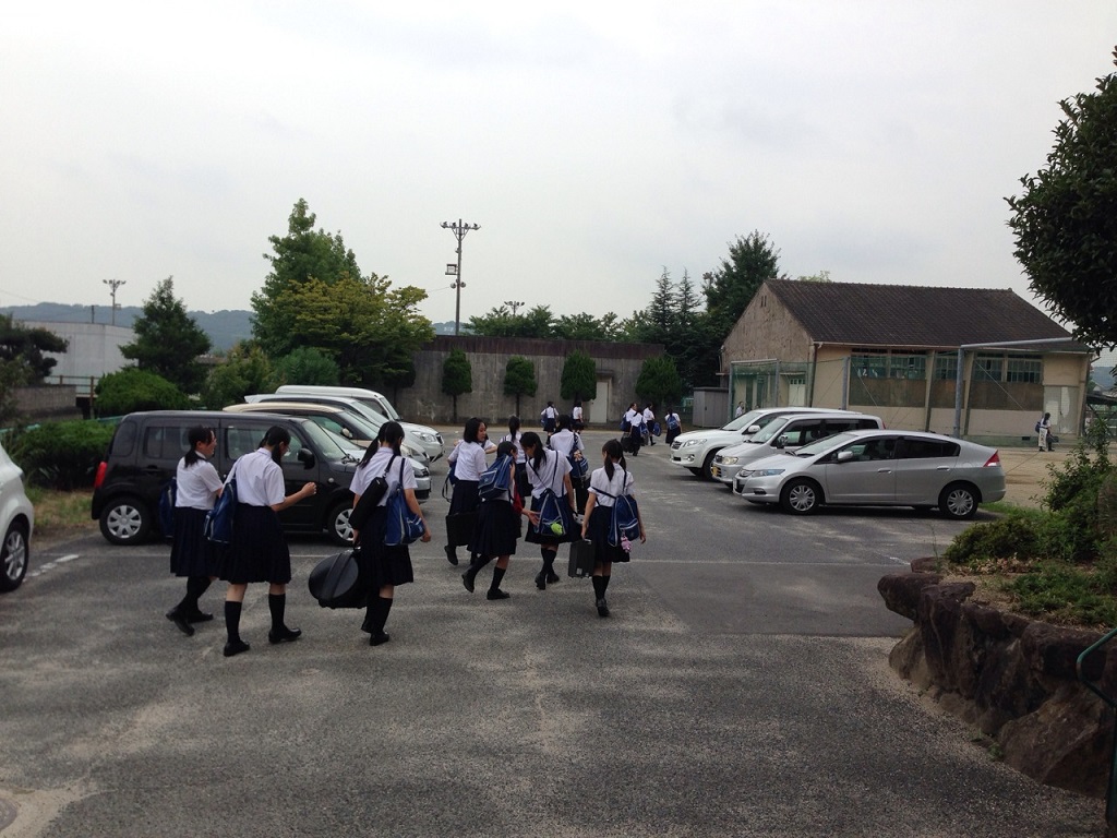 楽器の搬出を終え、生徒達は一緒にバス移動です