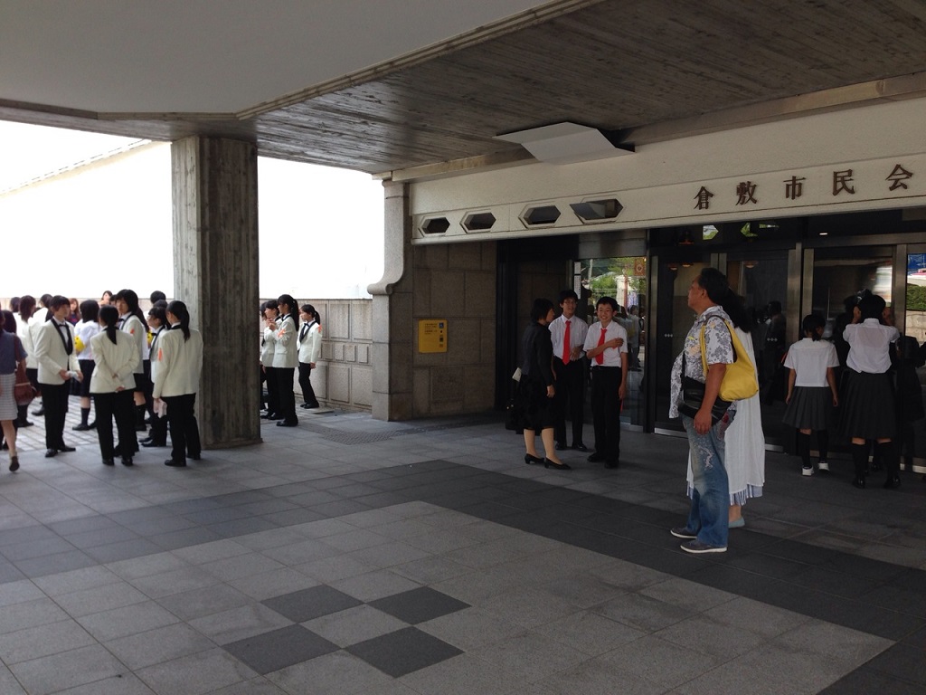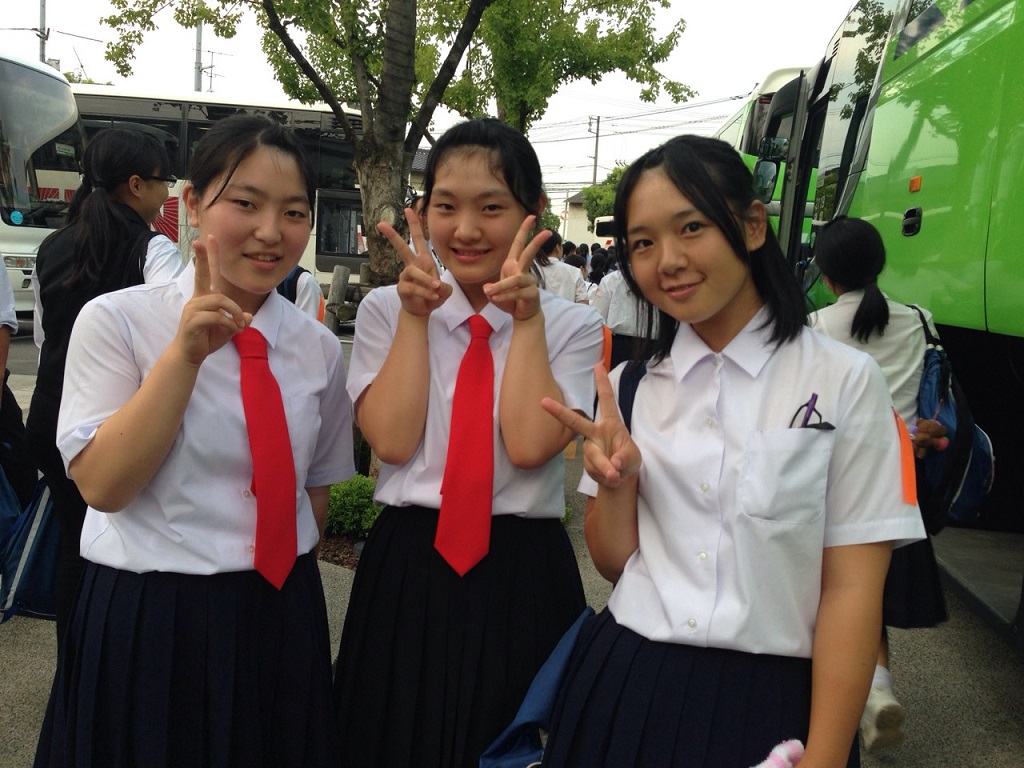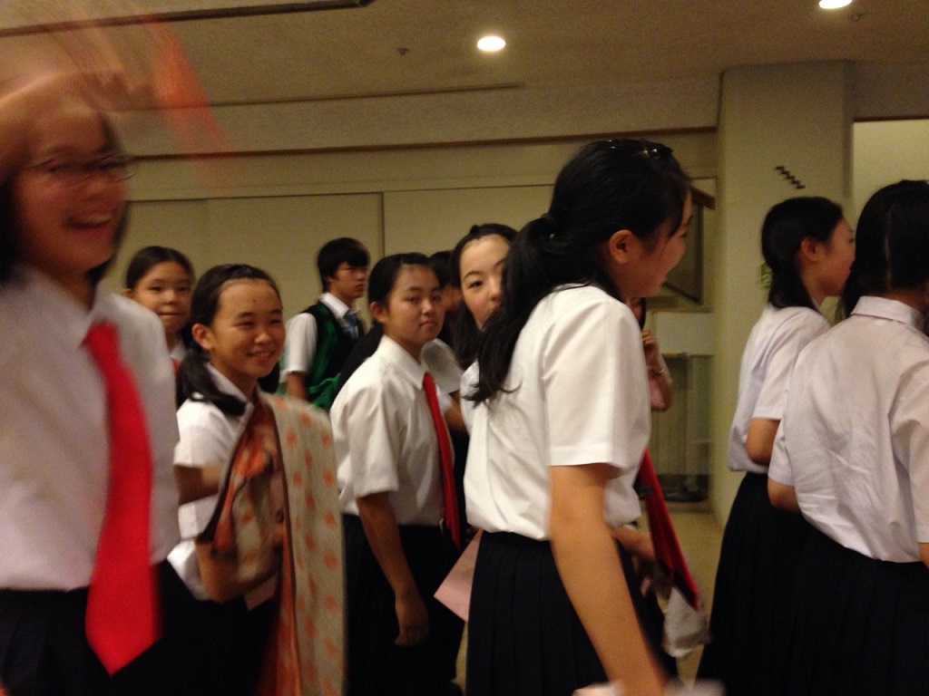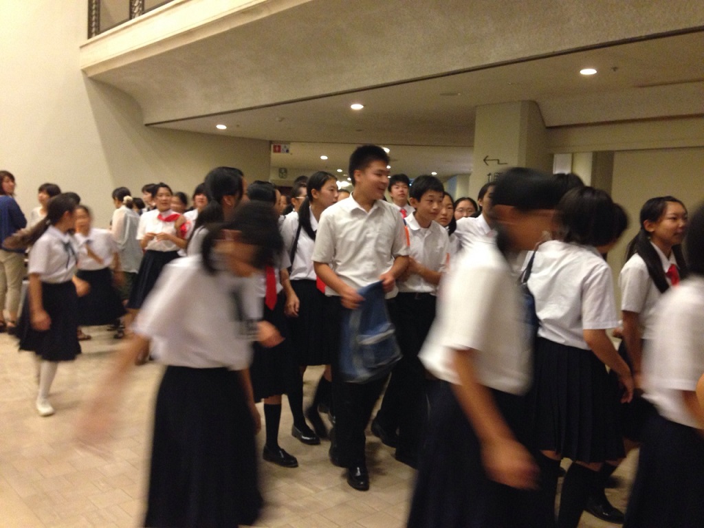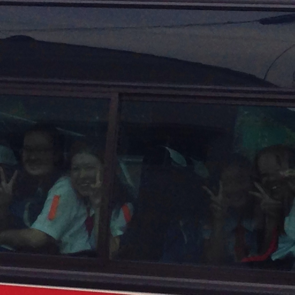 楽器の搬出を終え、生徒達は一緒にバス移動です