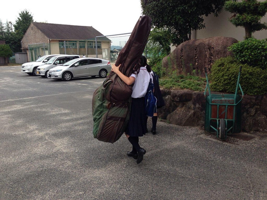 大きい楽器はトラックで、小さい楽器は担当者が持って行きます