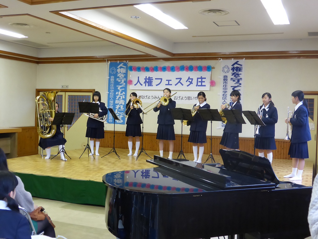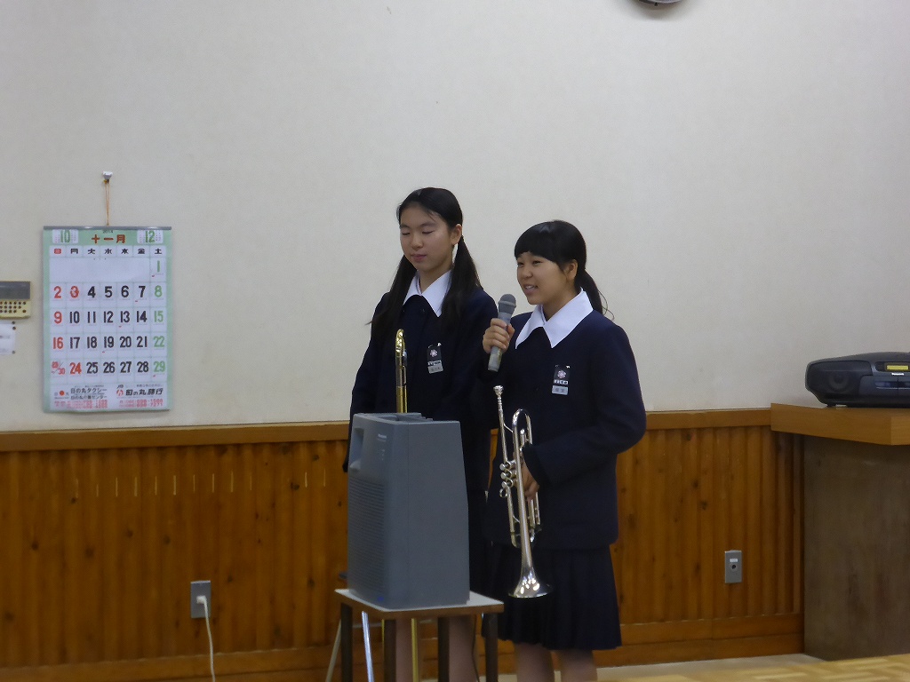 さぁ最後の発表、庄中学校による吹奏楽と国語弁論です