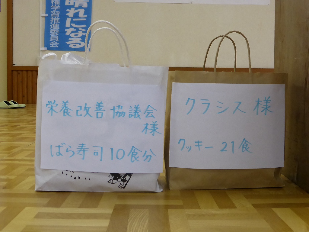 賞品は栄養改善の方から「バラ寿司」、クラシスの方からクッキー