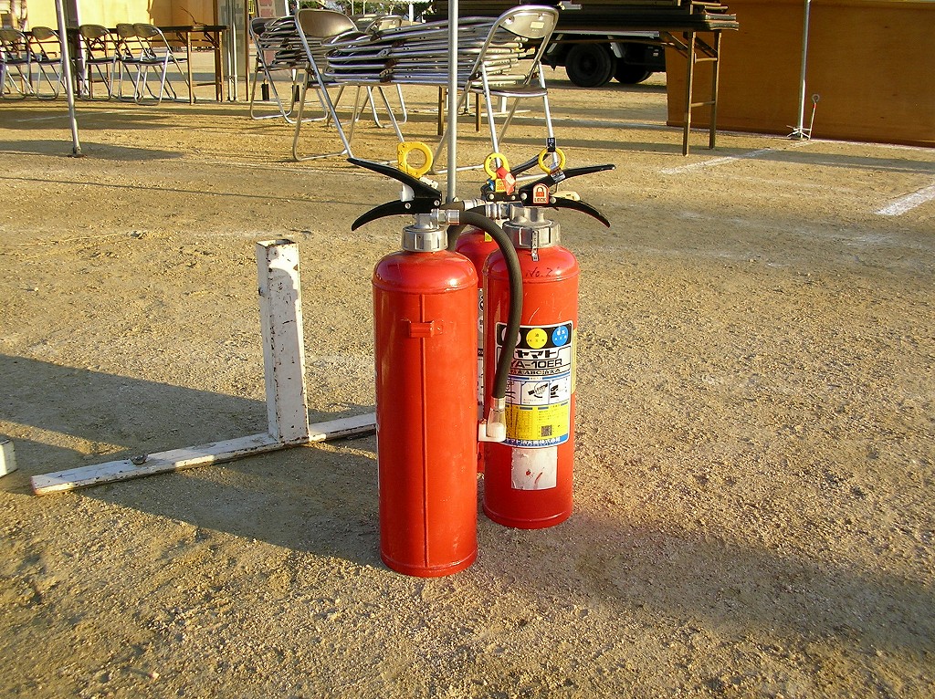 今回は出店者の方に、「火器使用の場合は消火器を