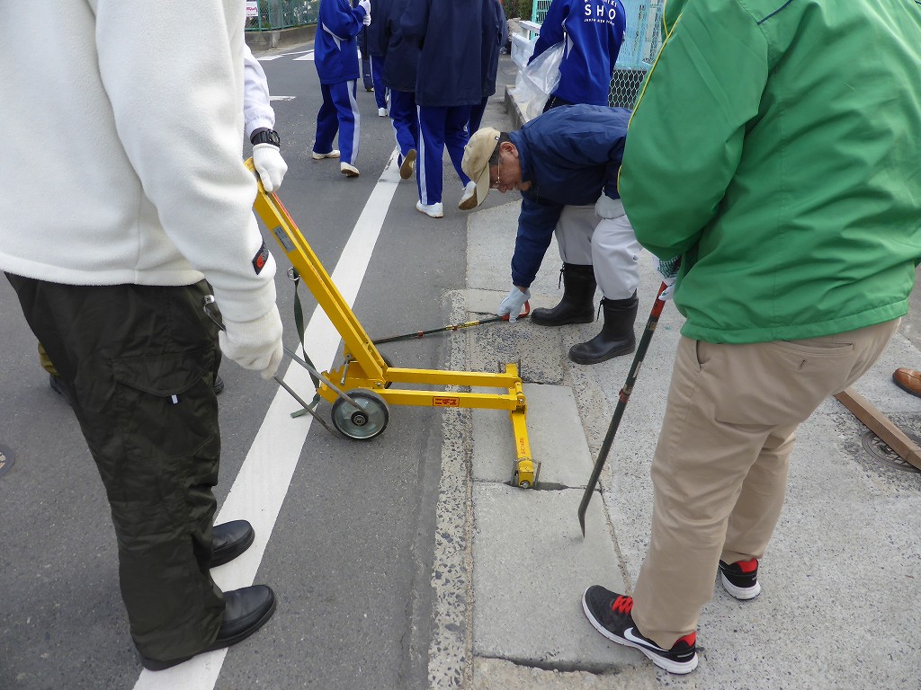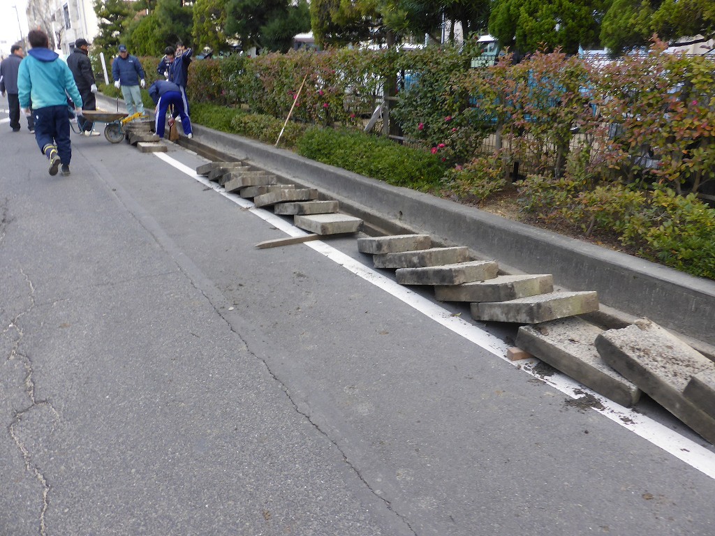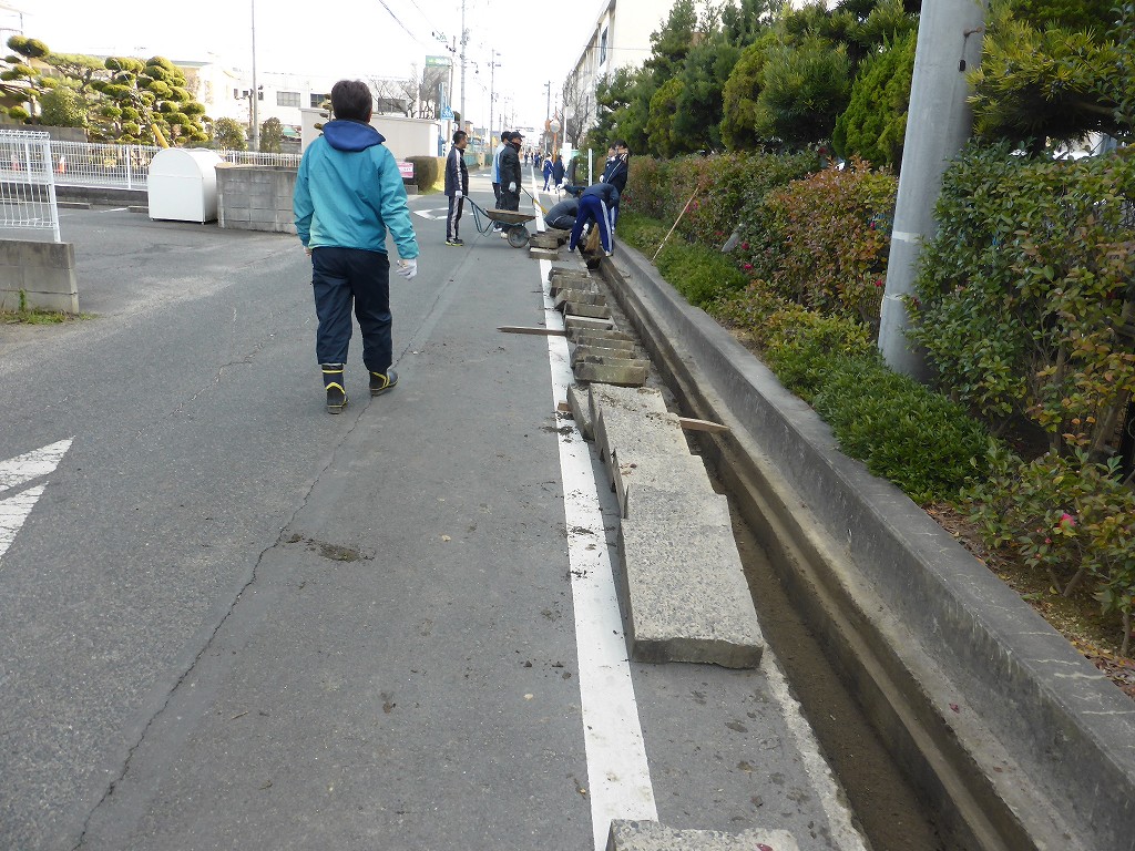 今回は、学校北の側溝掃除をお手伝いです
