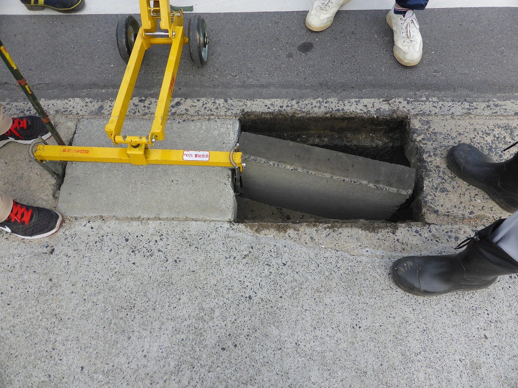 いきなり蓋を側溝の中に・・・