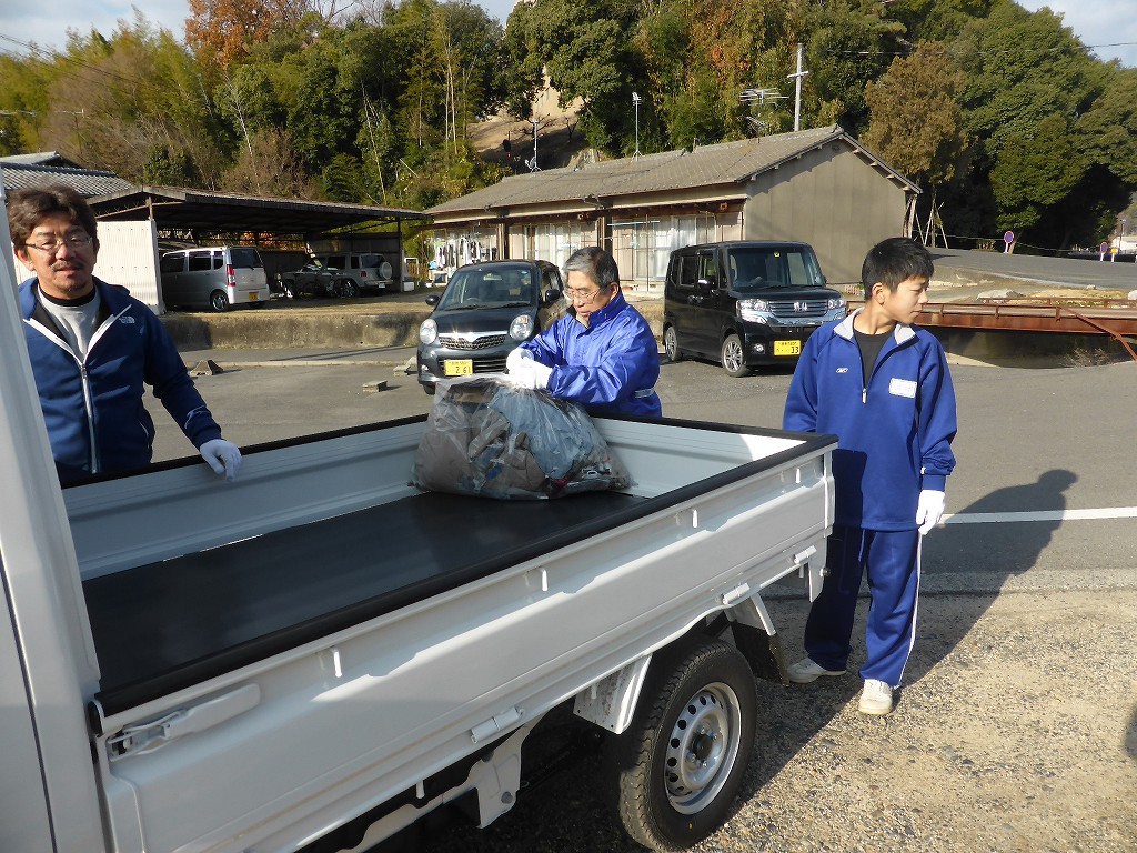 側溝清掃を中断して、「ゴミ回収」のお手伝いです