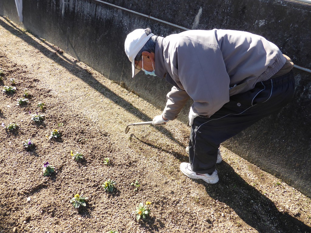 奉仕作業に参加した地協メンバーは、花壇の草取りです