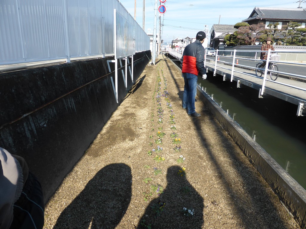植栽したばかりの花がまだ小さく、少し淋しい花壇でした