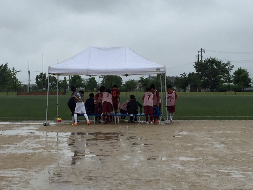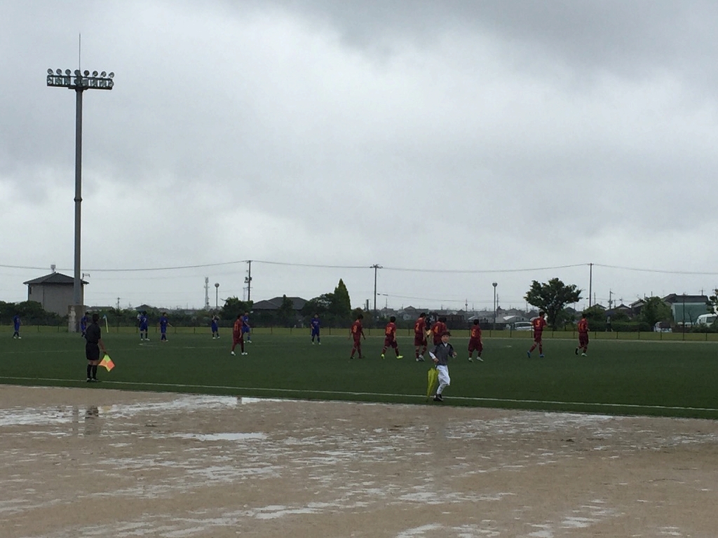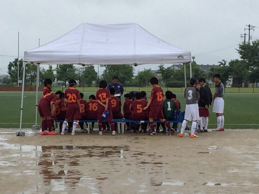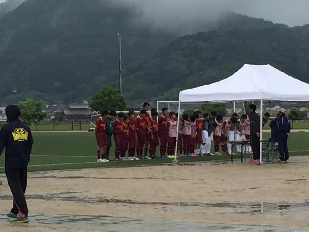 会場は雨の灘崎総合公園、対戦相手は早島中
