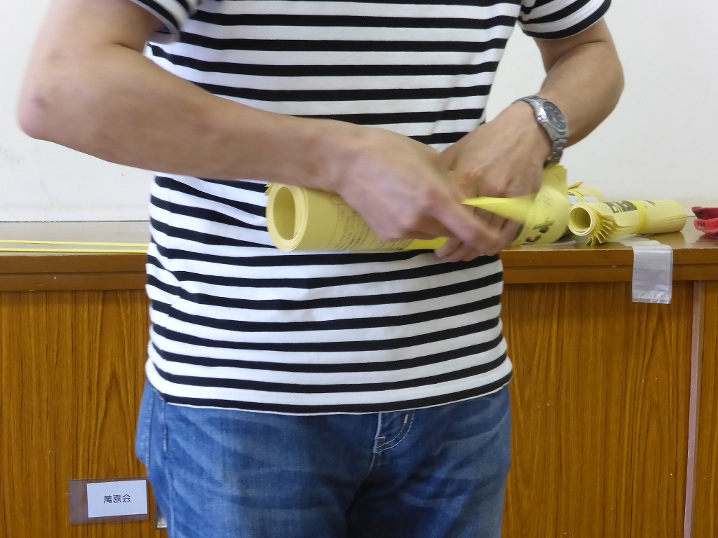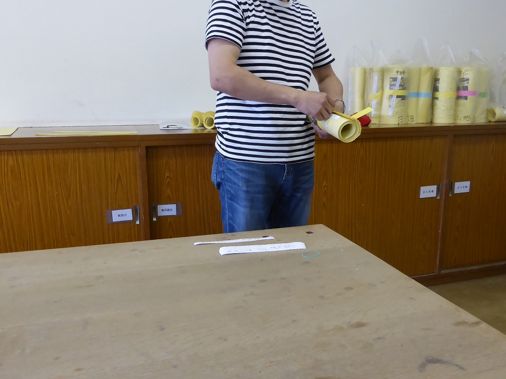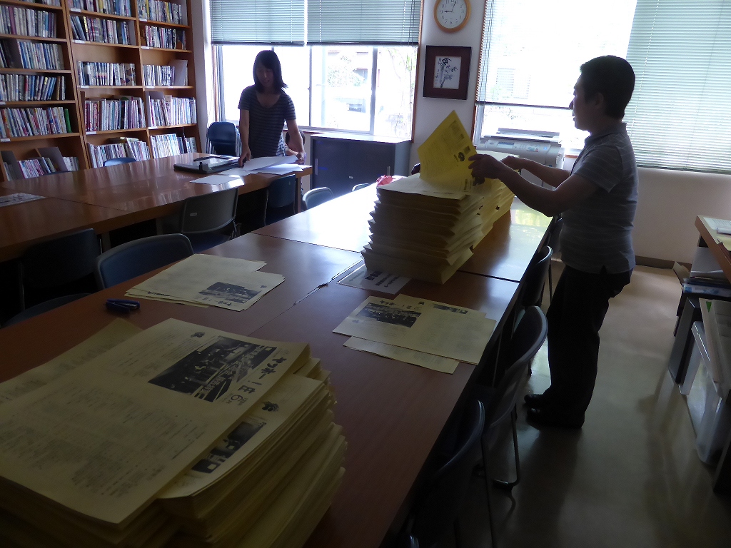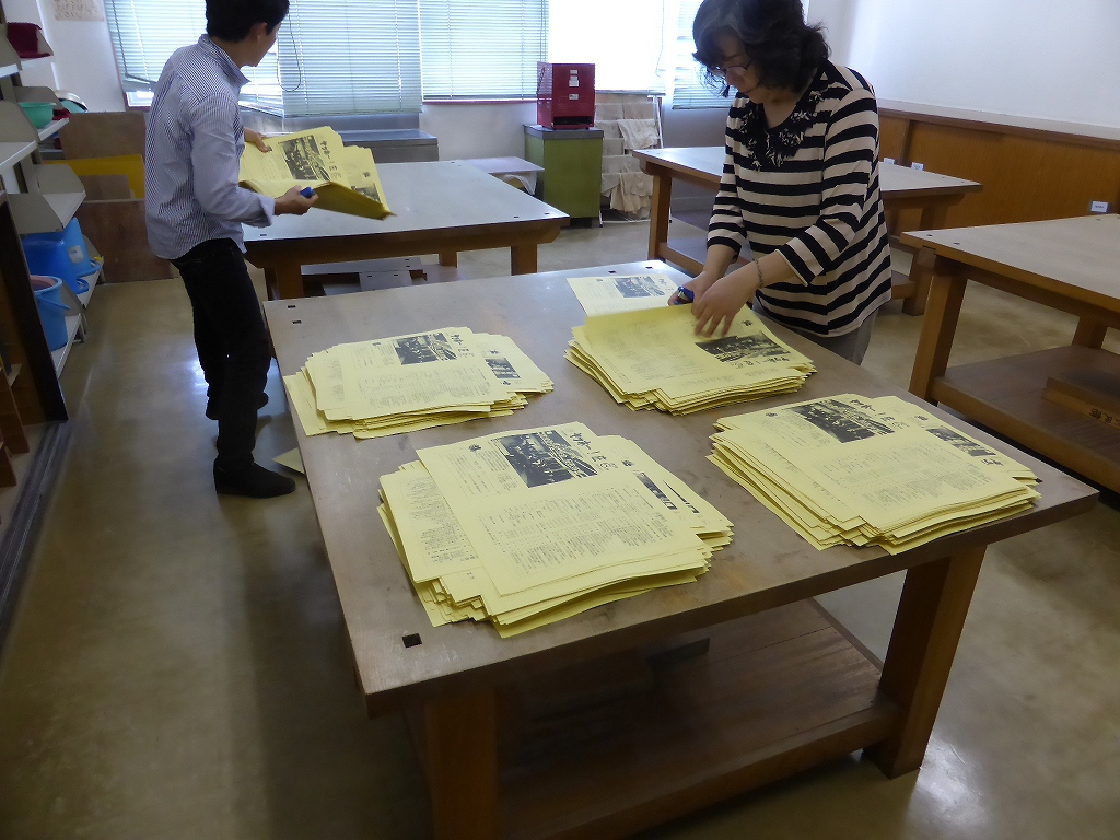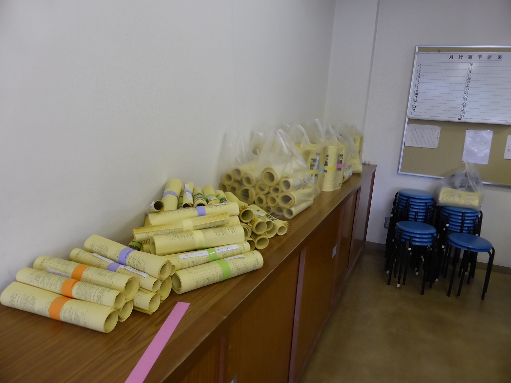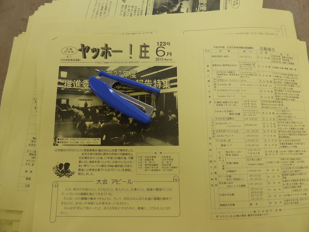 ほぼ2時間半かけて、ホッチキス留めができ最後の作業です