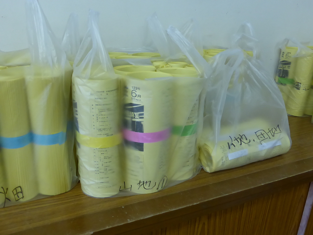地区単位でビニール袋に入れていきます